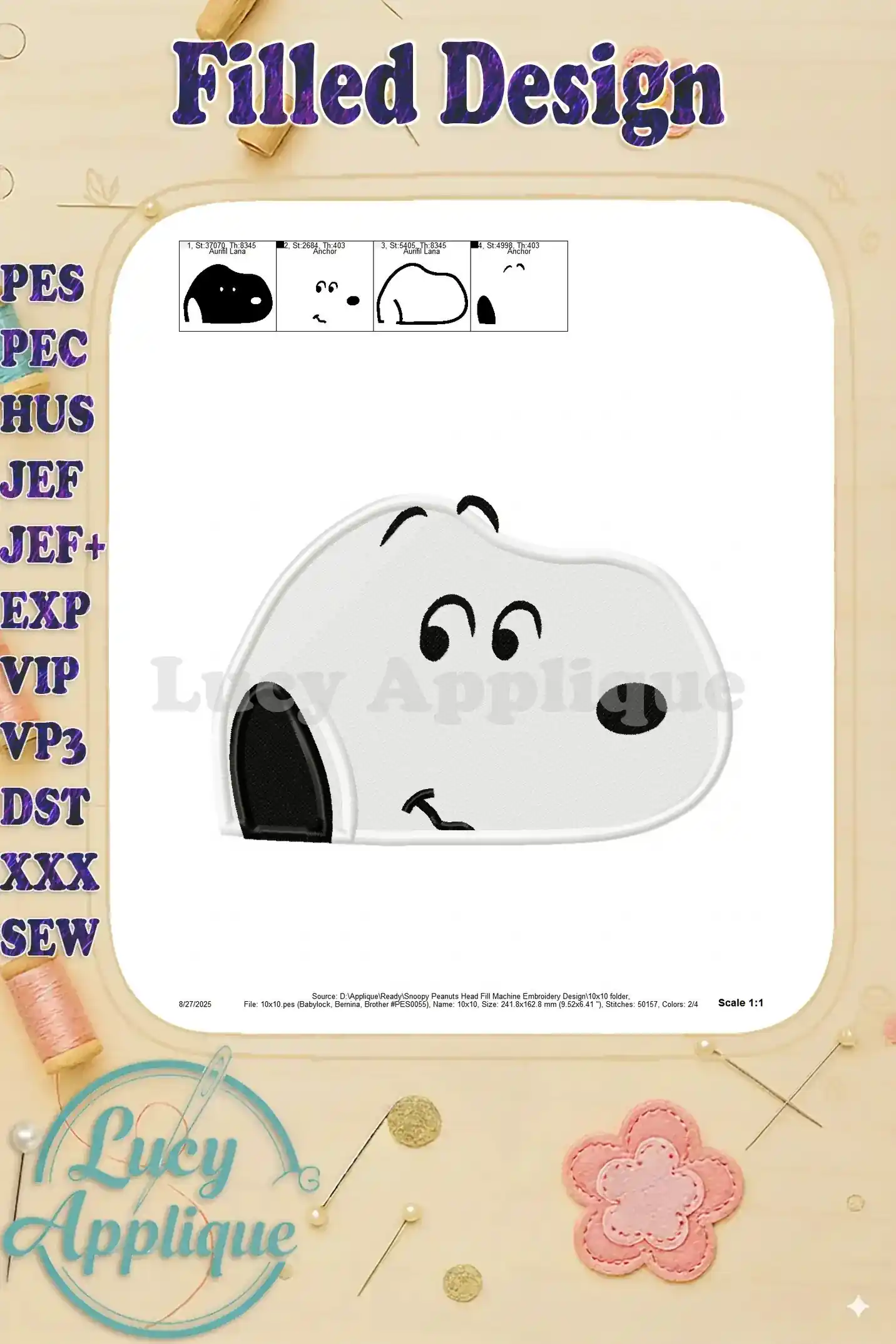 Snoopy Peanuts Head Fill Machine Embroidery Design – Instant Download
