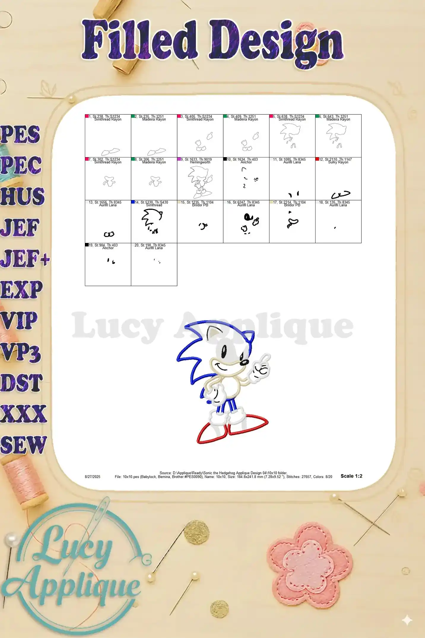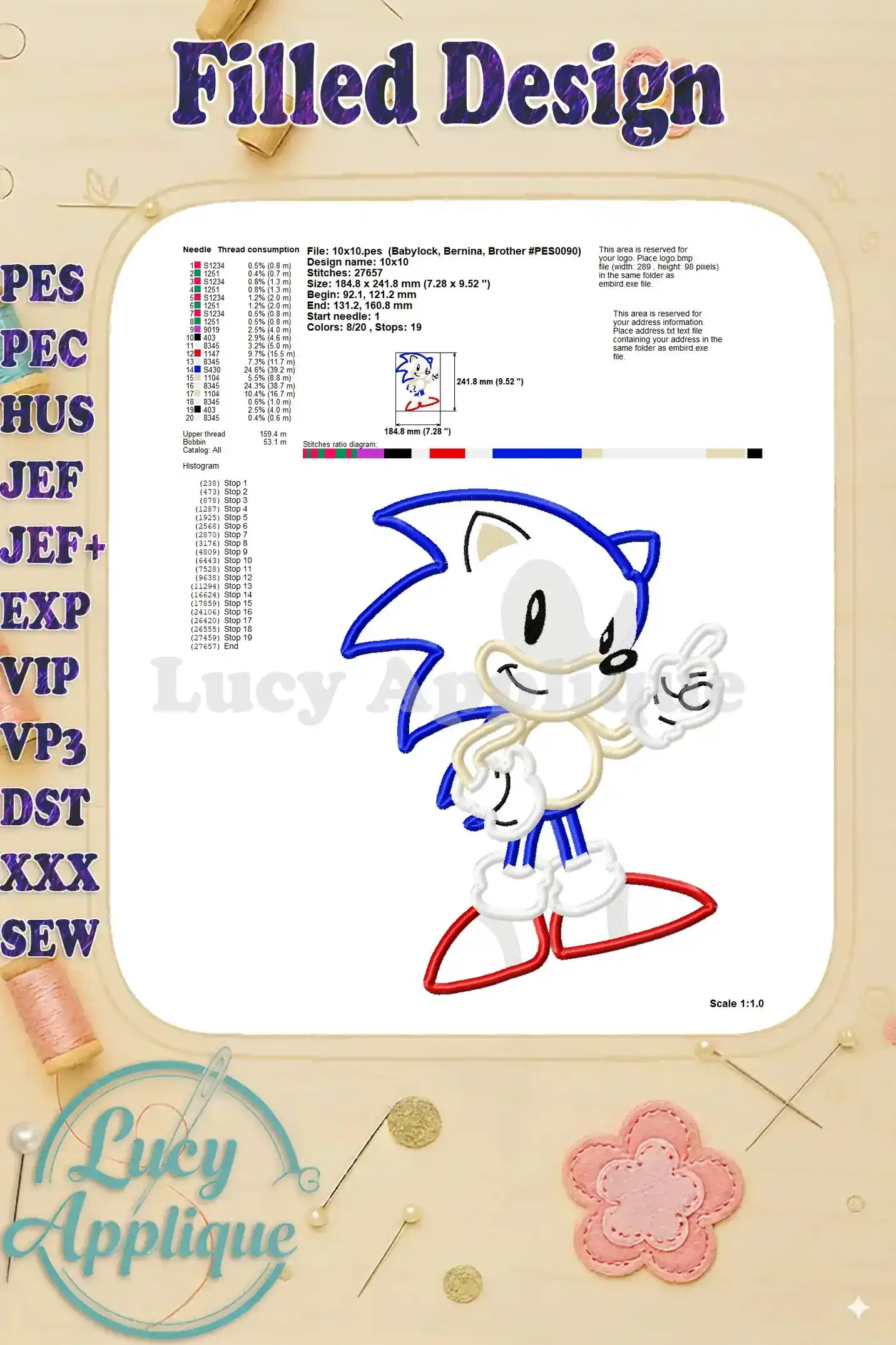 Sonic the Hedgehog Applique Design 04 – Instant Download