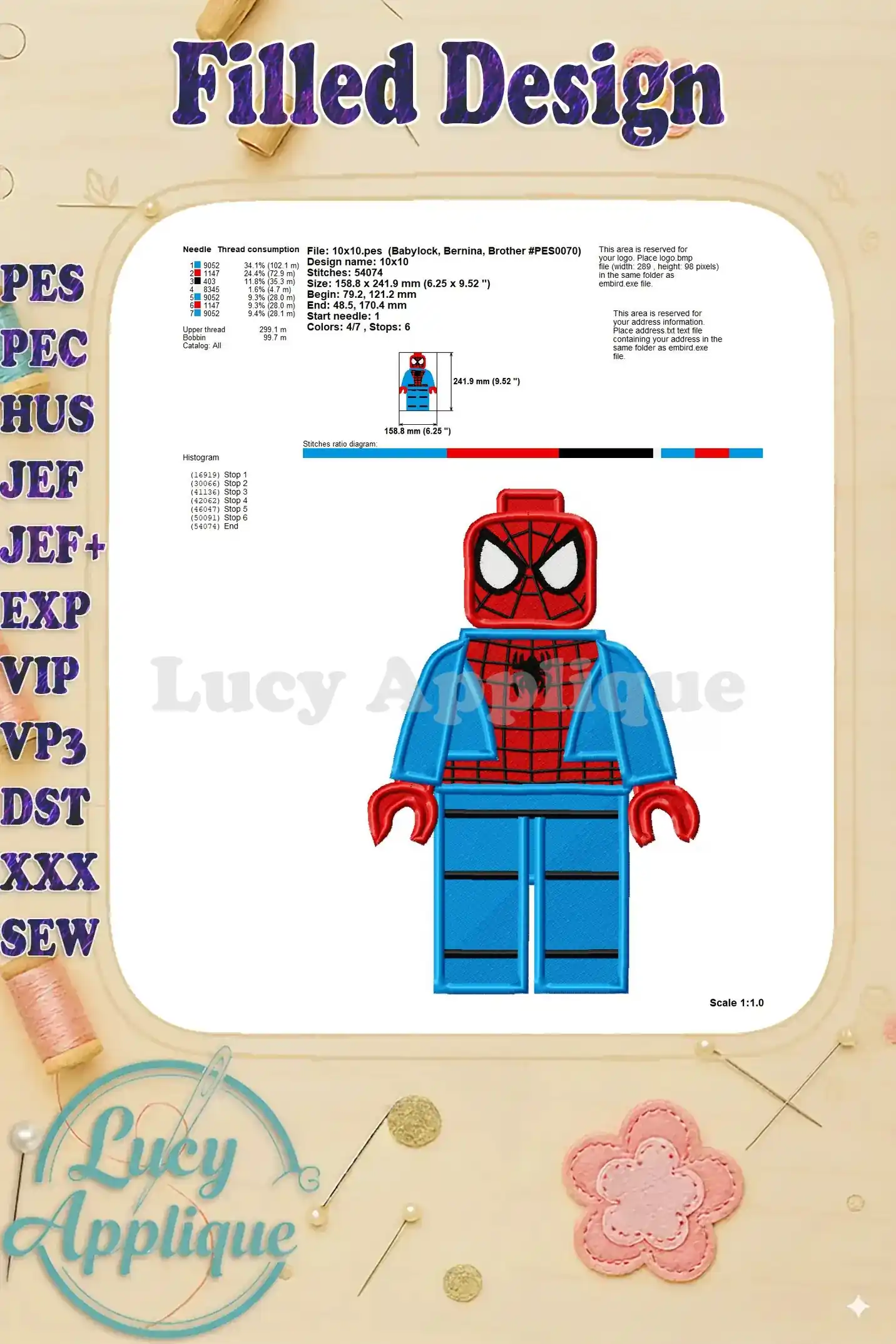 Spider Man Lego Filled Embroidery Design – Instant Download