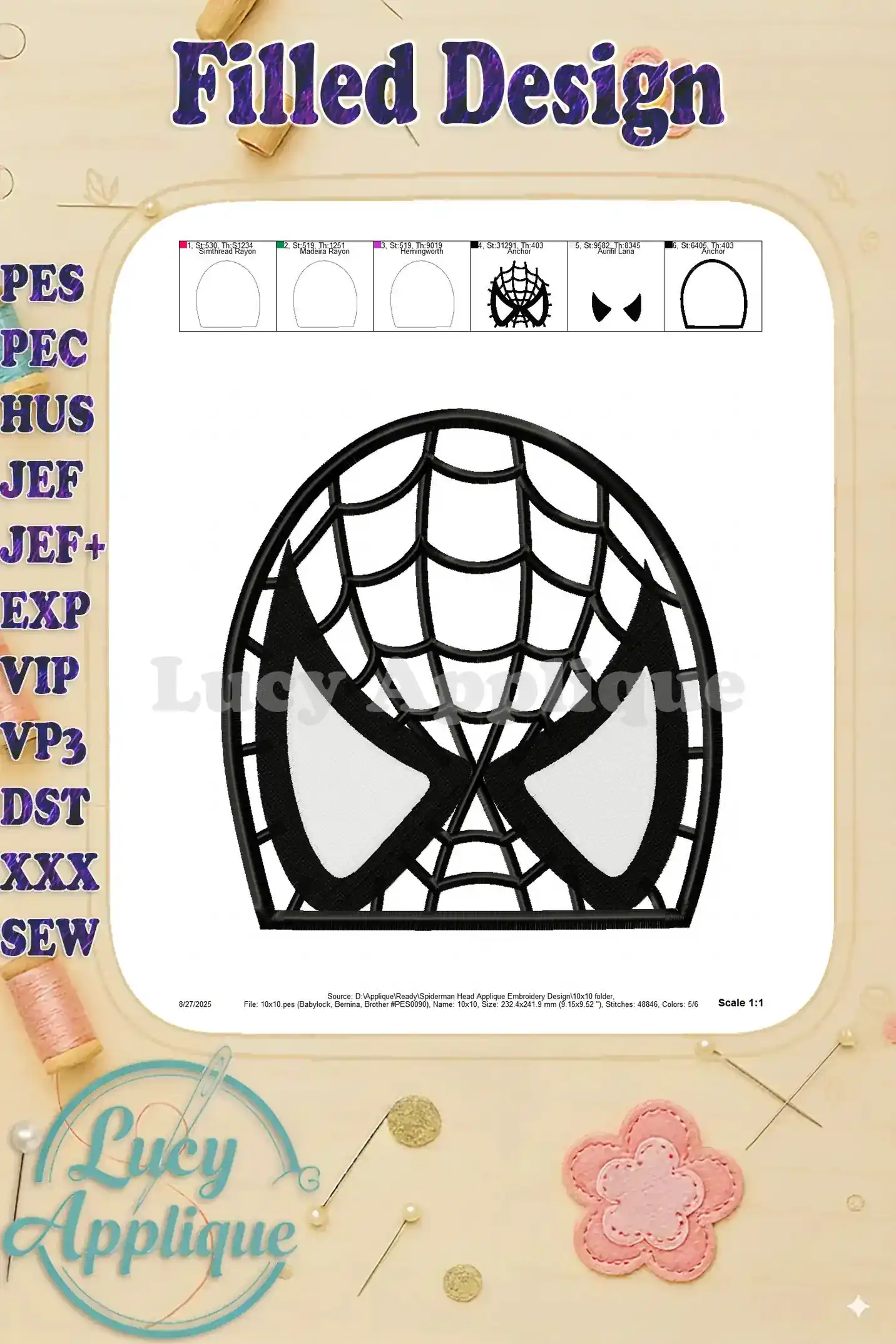 Spiderman Head Applique Embroidery Design – Instant Download