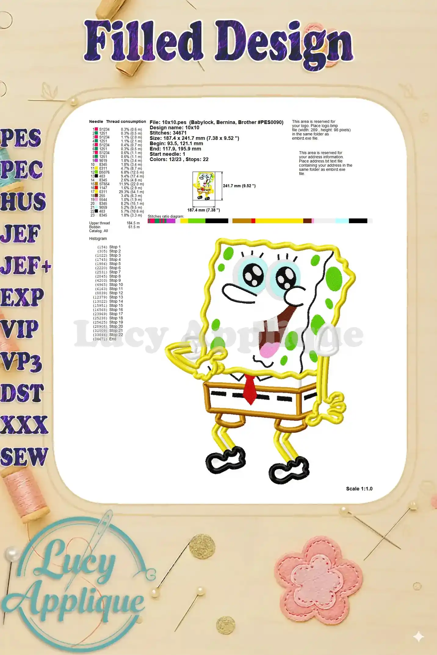 SpongeBob SquarePants Applique Design 02 – Instant Download