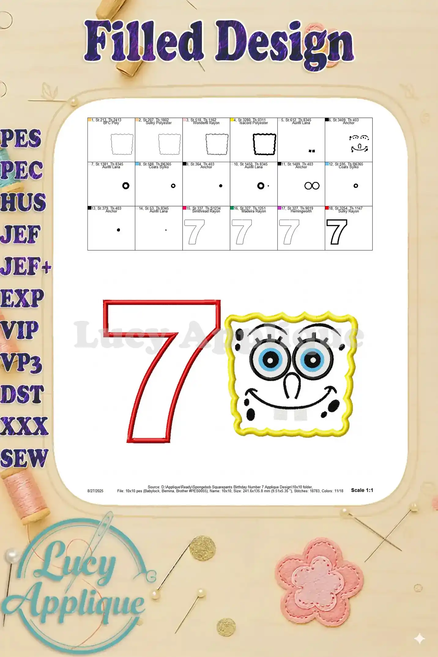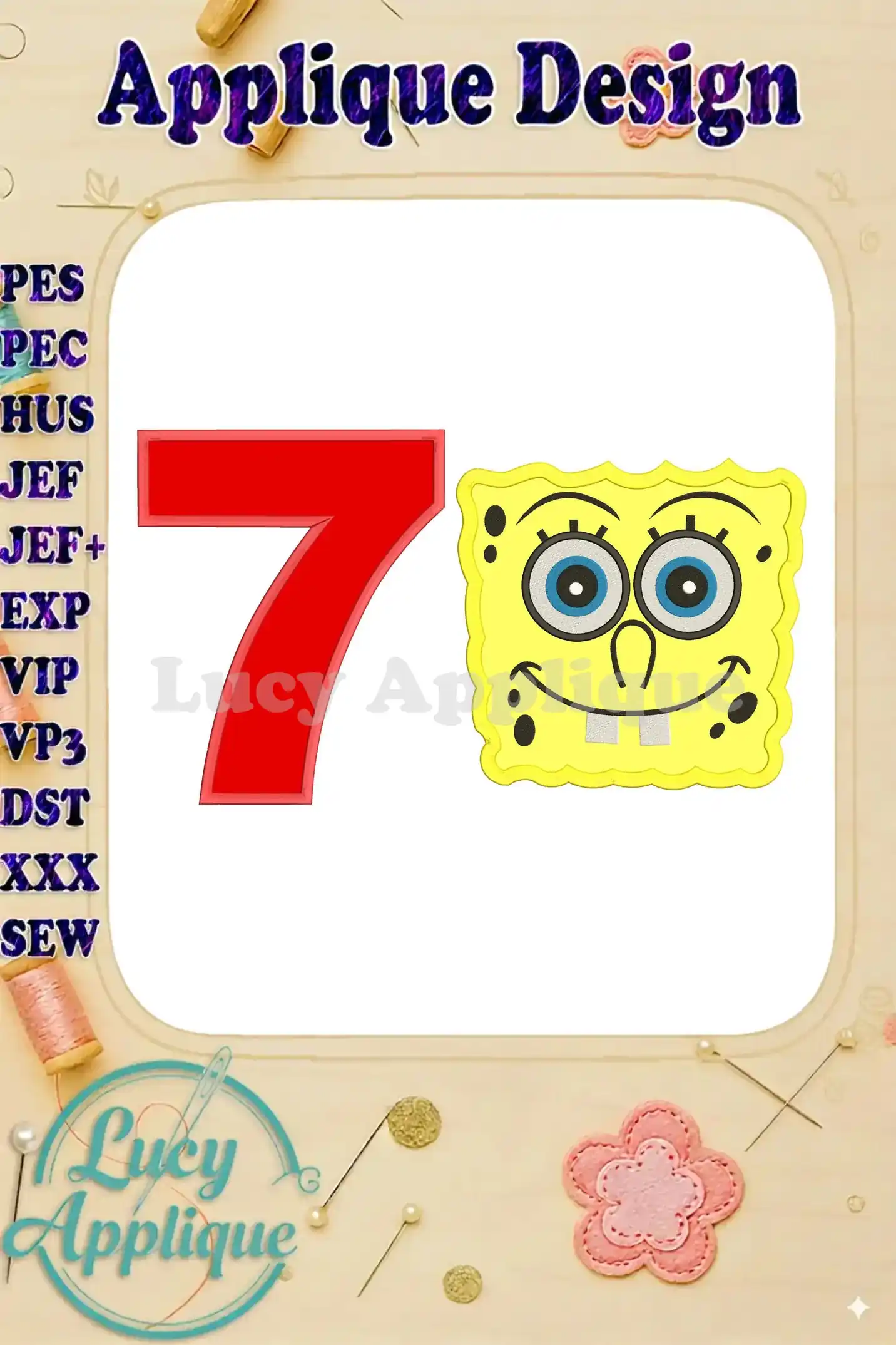 Spongebob Squarepants Birthday Number 7 Applique Design – Instant Download