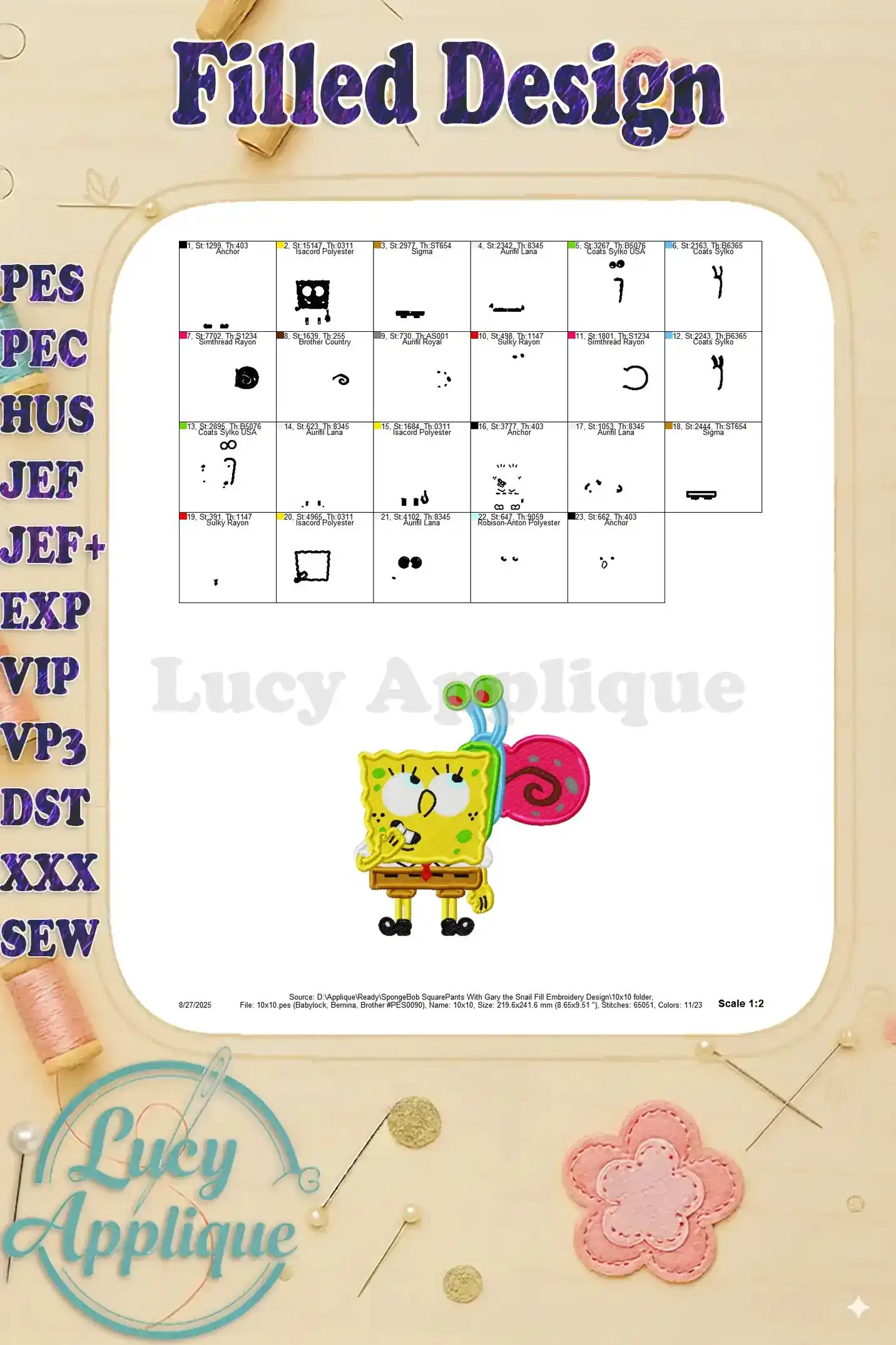 SpongeBob SquarePants With Gary the Snail Fill Embroidery Design – Instant Download