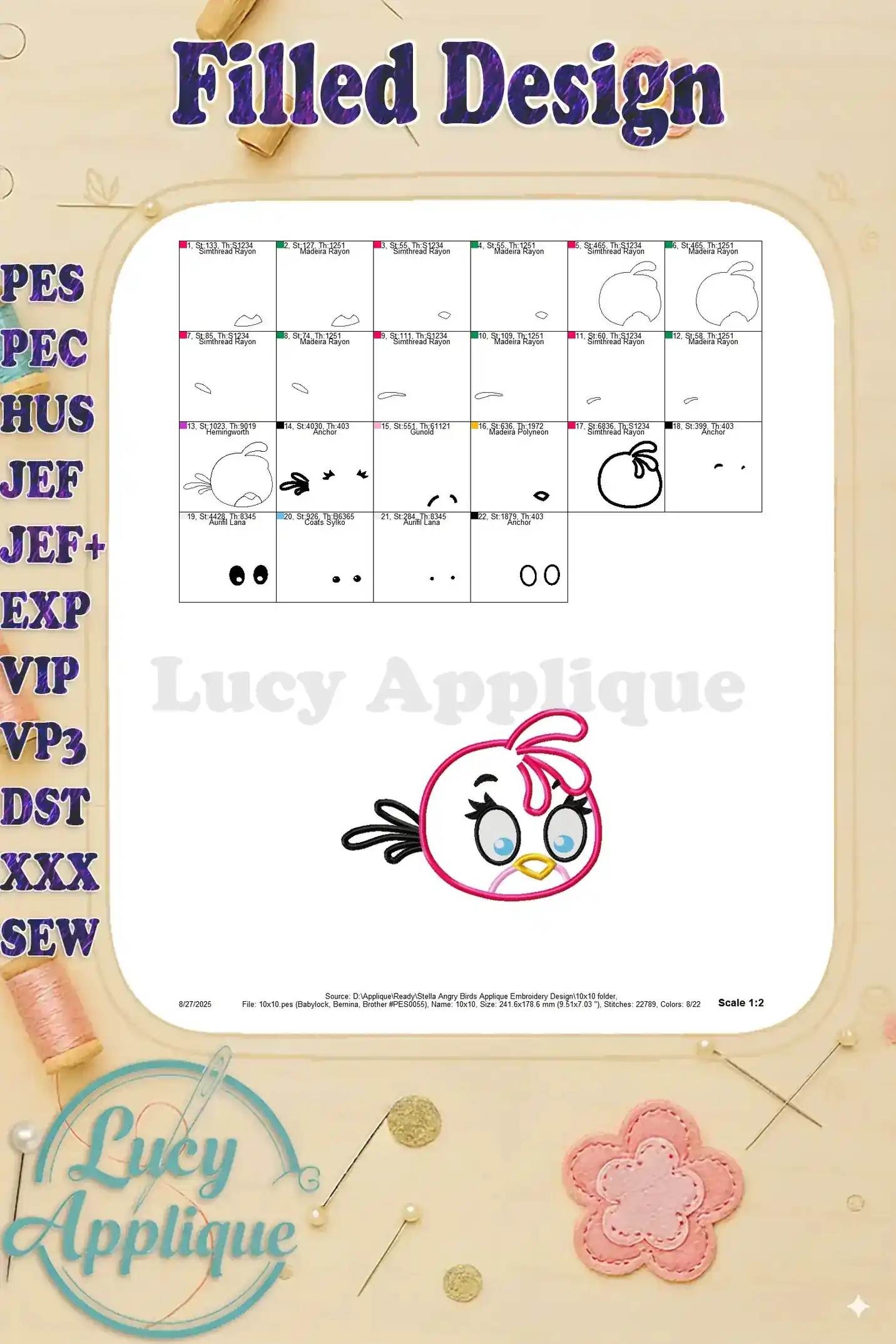 Stella Angry Birds Applique Embroidery Design – Instant Download