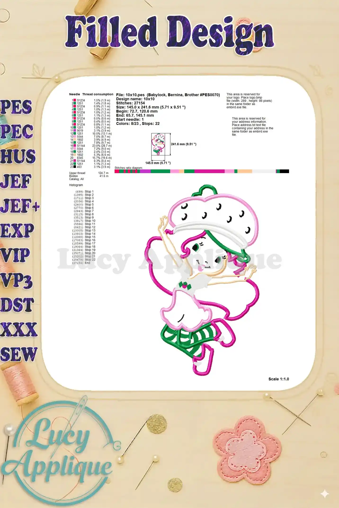 Strawberry Shortcake Applique Design 02 – Instant Download