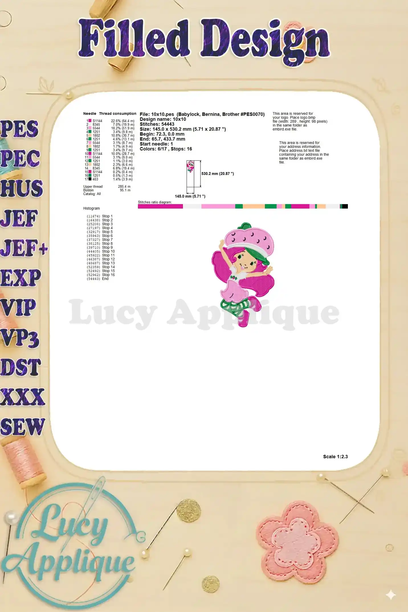 Strawberry Shortcake Fill Embroidery Design 02 – Instant Download