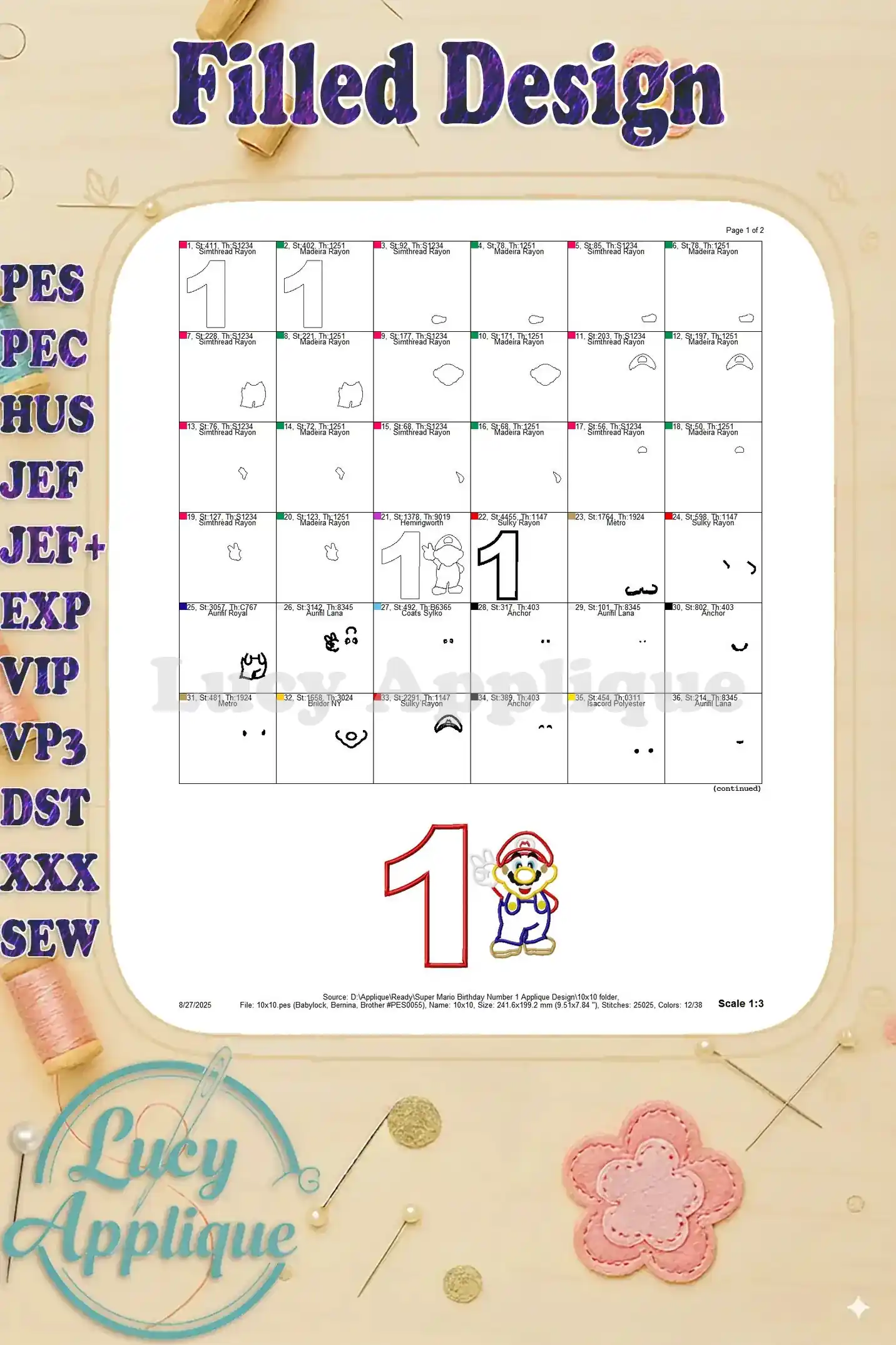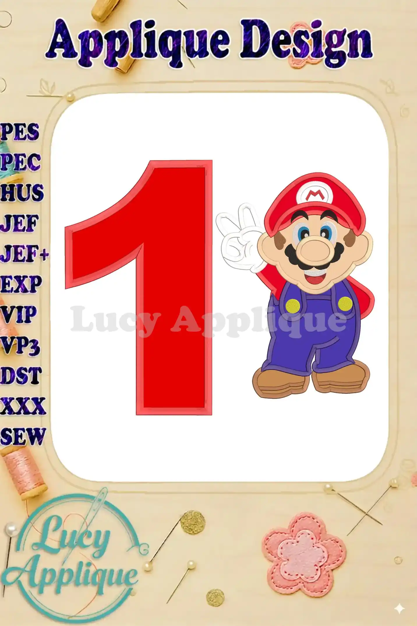 Super Mario Birthday Number 1 Applique Design – Instant Download
