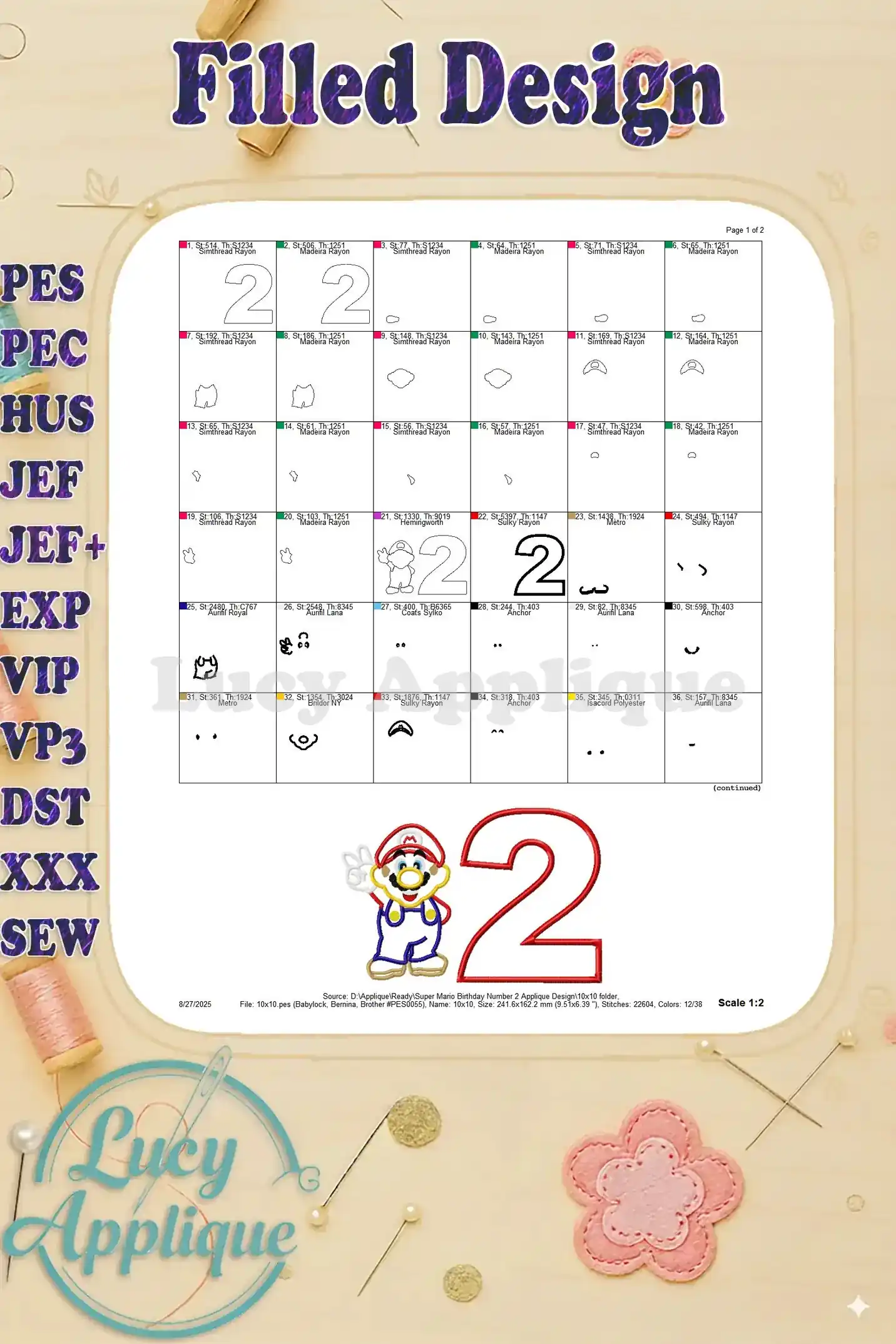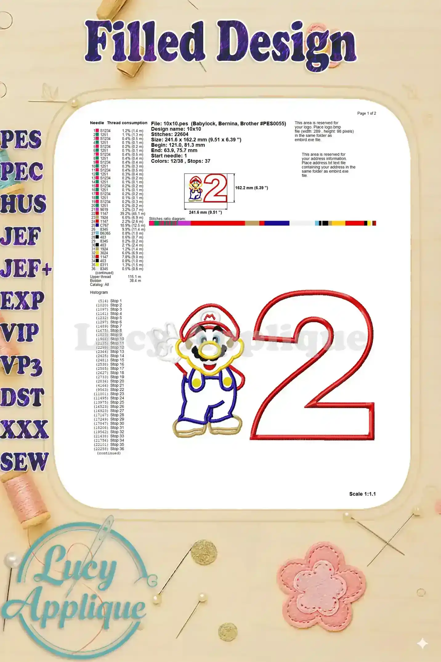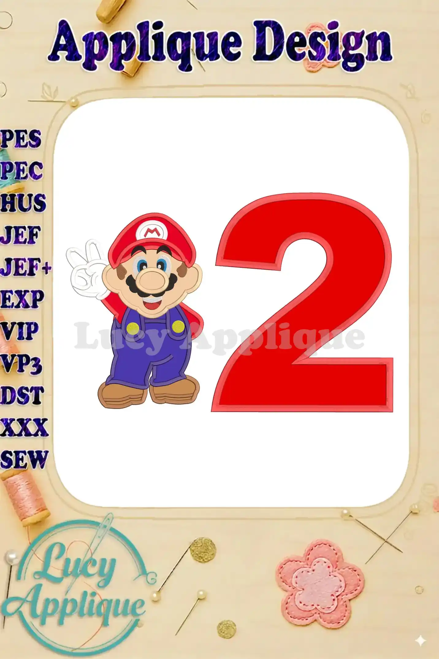 Super Mario Birthday Number 2 Applique Design – Instant Download