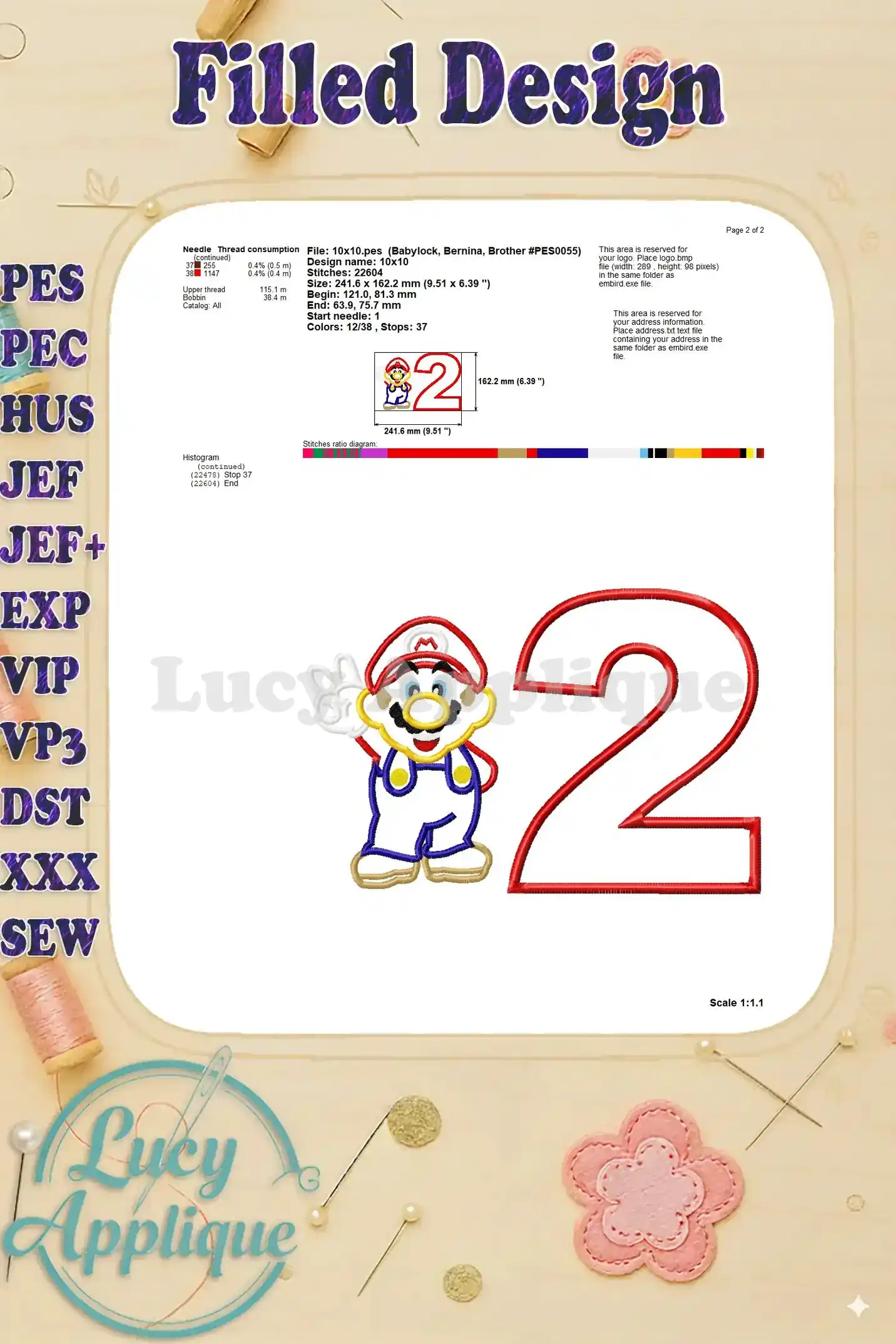 Celebrate birthdays with this adorable Super Mario applique design! Perfect for adding a fun, personalized touch to clothes, bags, or party decorations. High-quality design, easy to stitch.