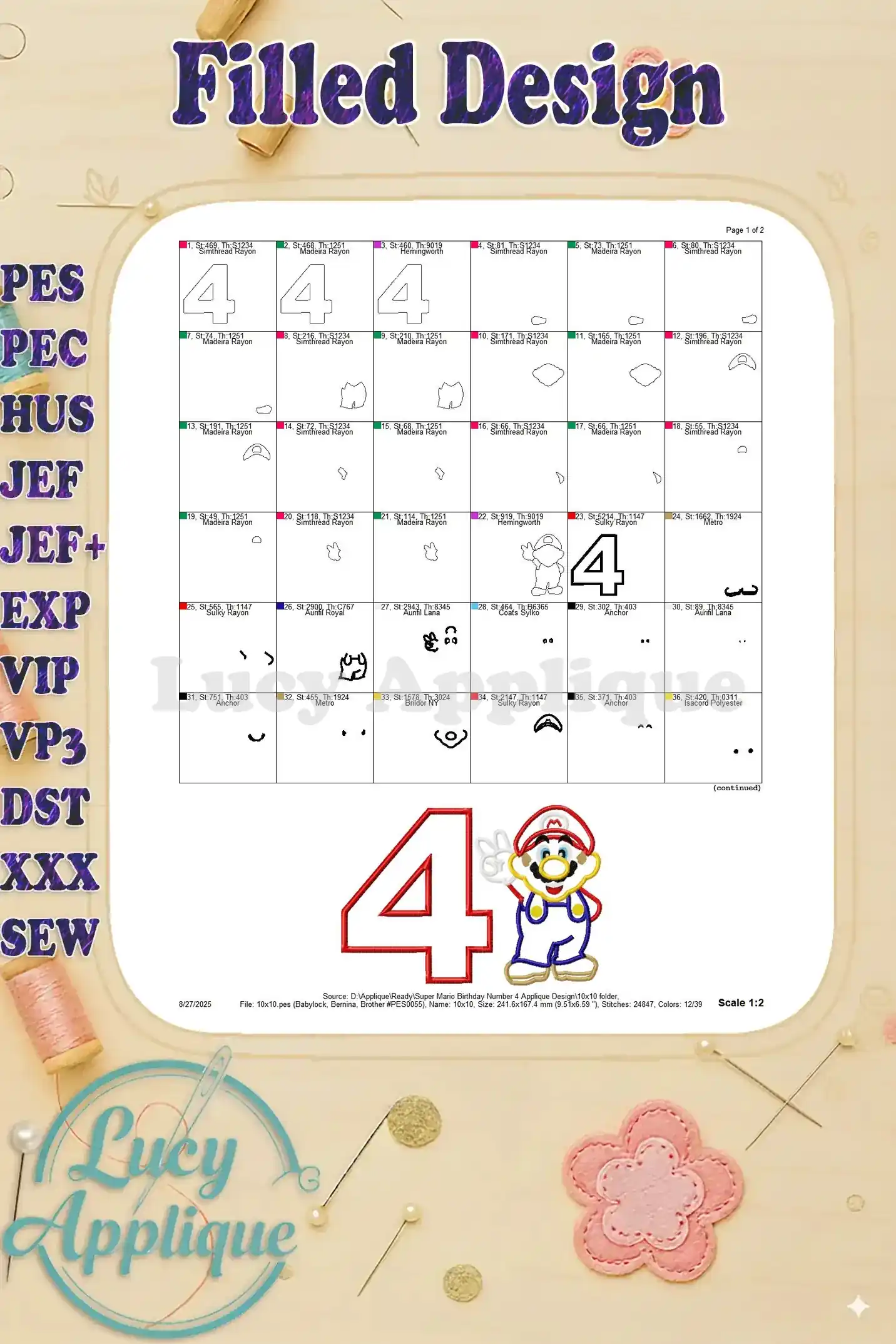 Super Mario Birthday Number 4 Applique Design – Instant Download