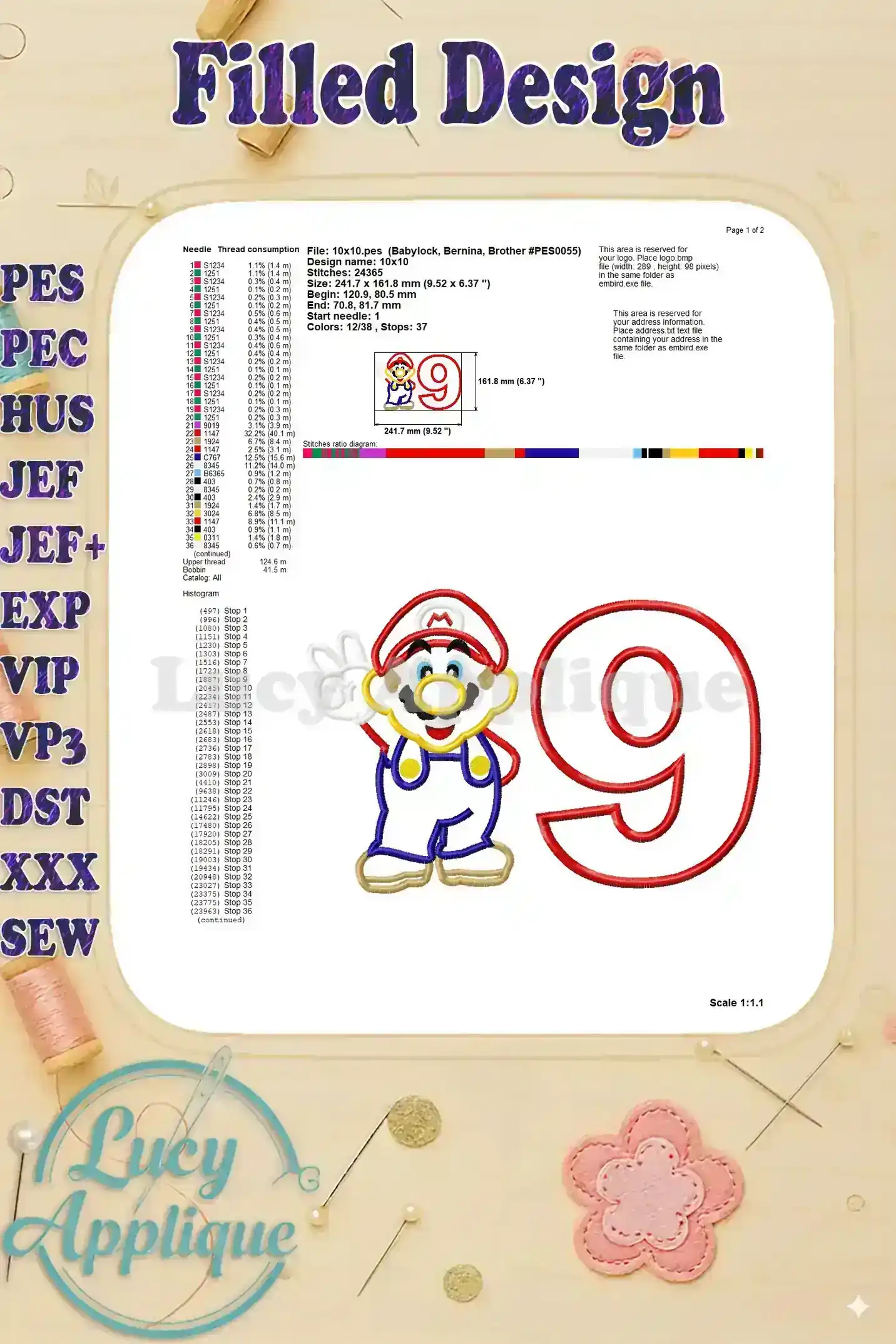Super Mario Birthday Number 9 Applique Design – Instant Download
