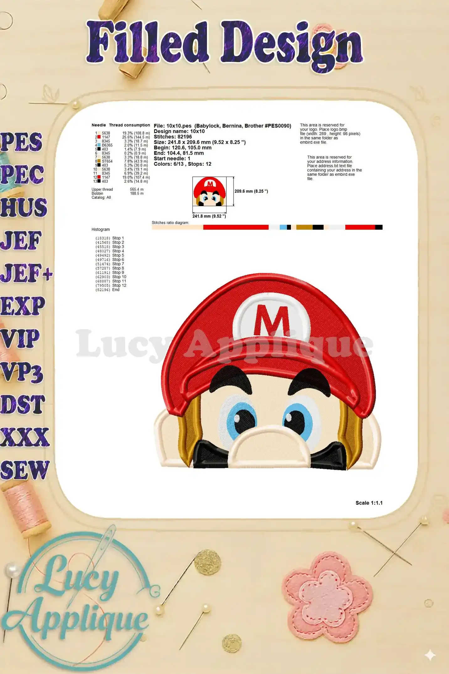 Super Mario Head Fill Machine 03 Embroidery Design – Instant Download
