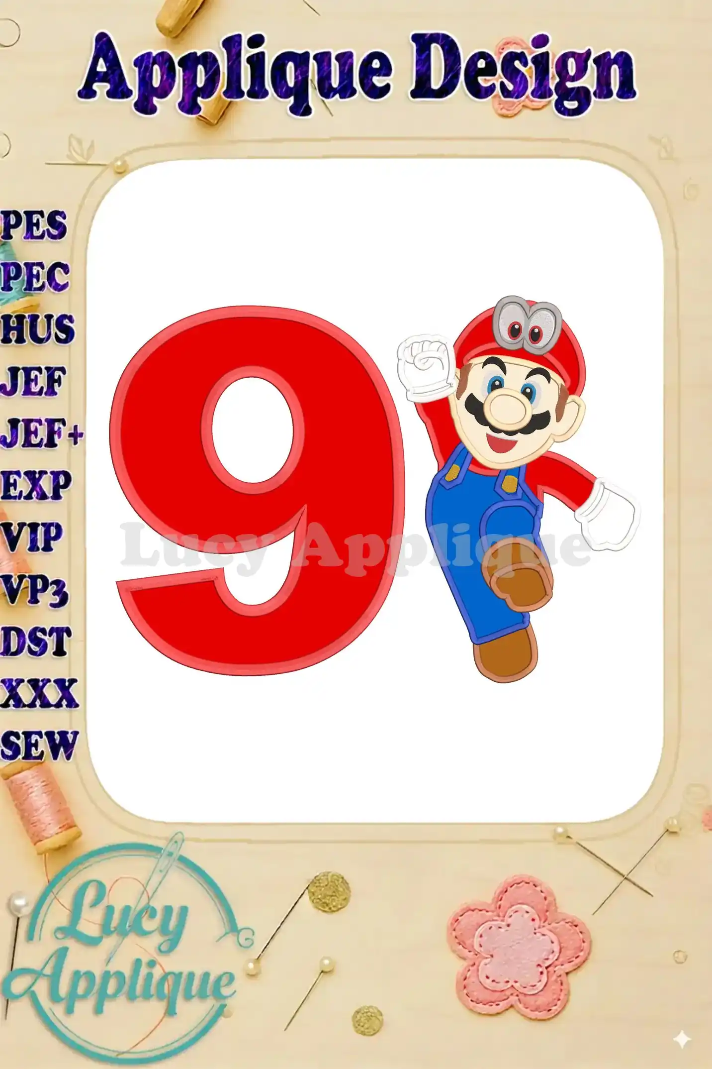 Super Mario Odyssey Birthday Number 9 Applique 01 Design – Instant Download