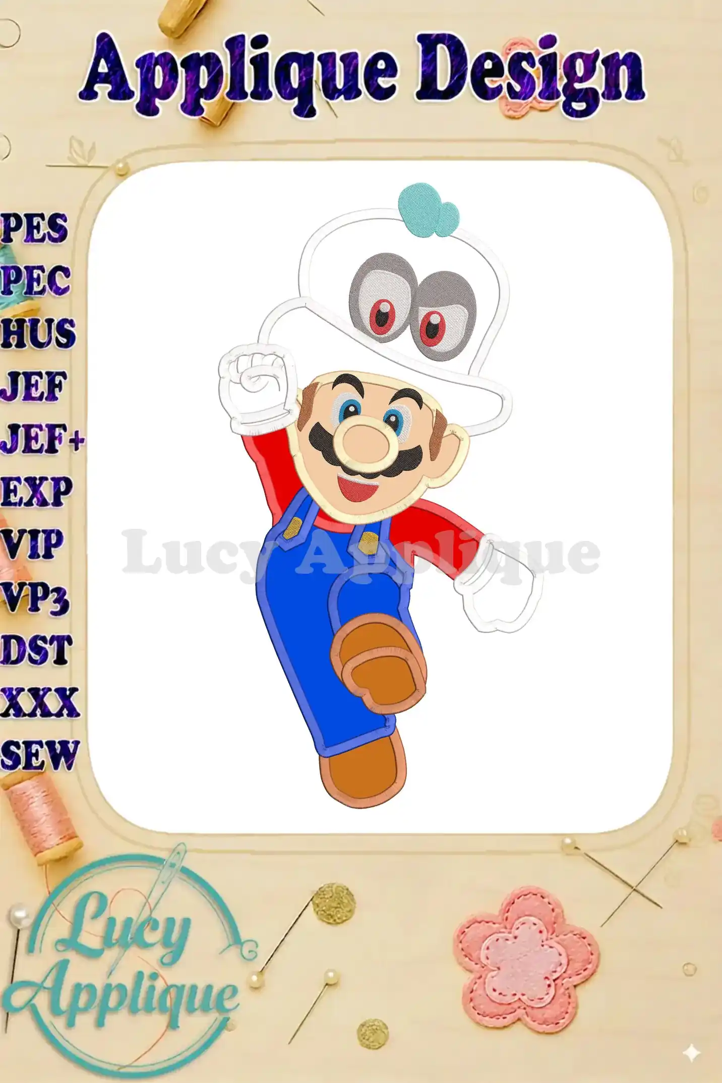 Super Mario Odyssey With Cappy Hat Applique 01 Embroidery Design – Instant Download