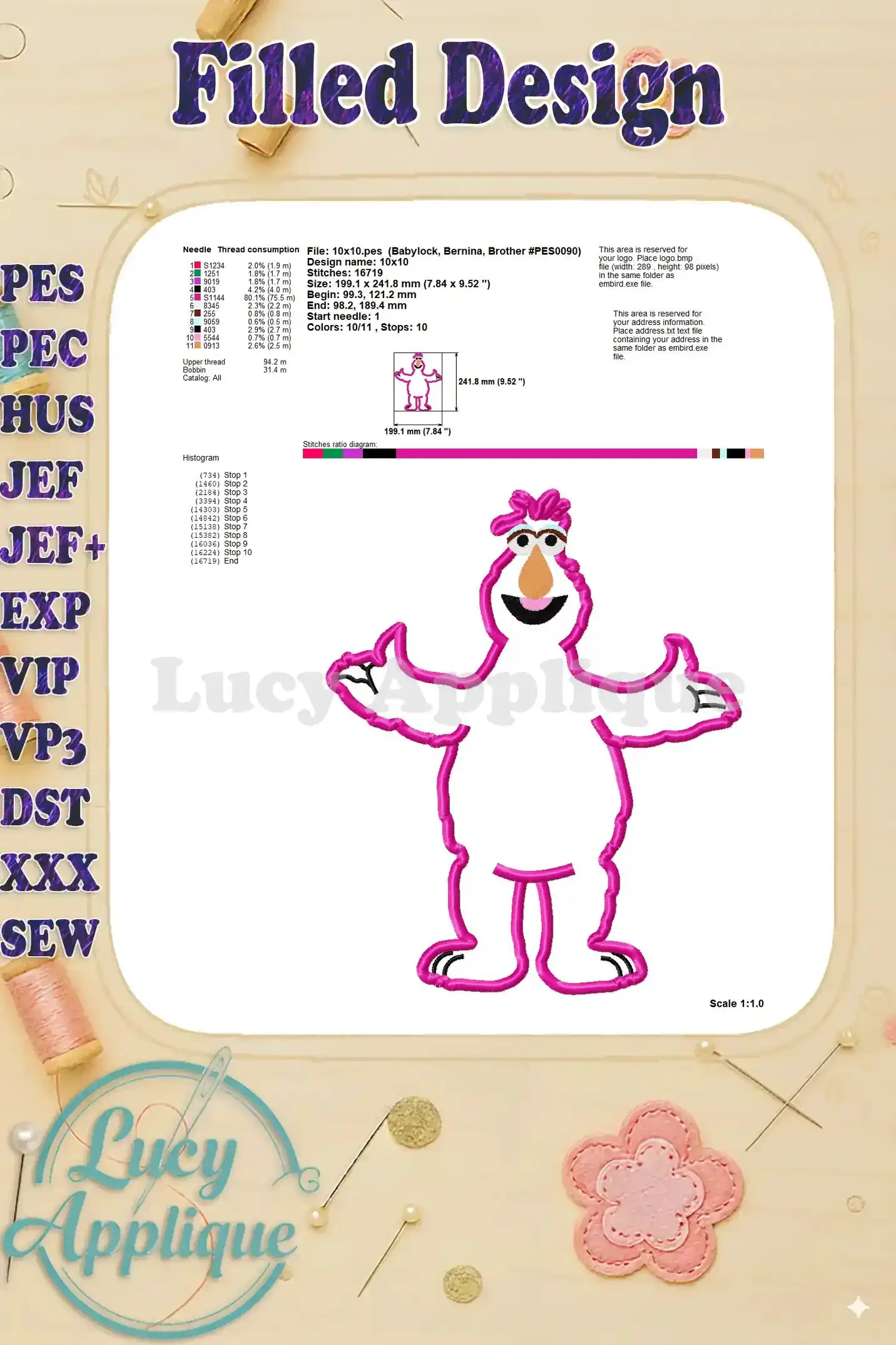 Telly Monster Sesame Street Applique Design 01 – Instant Download