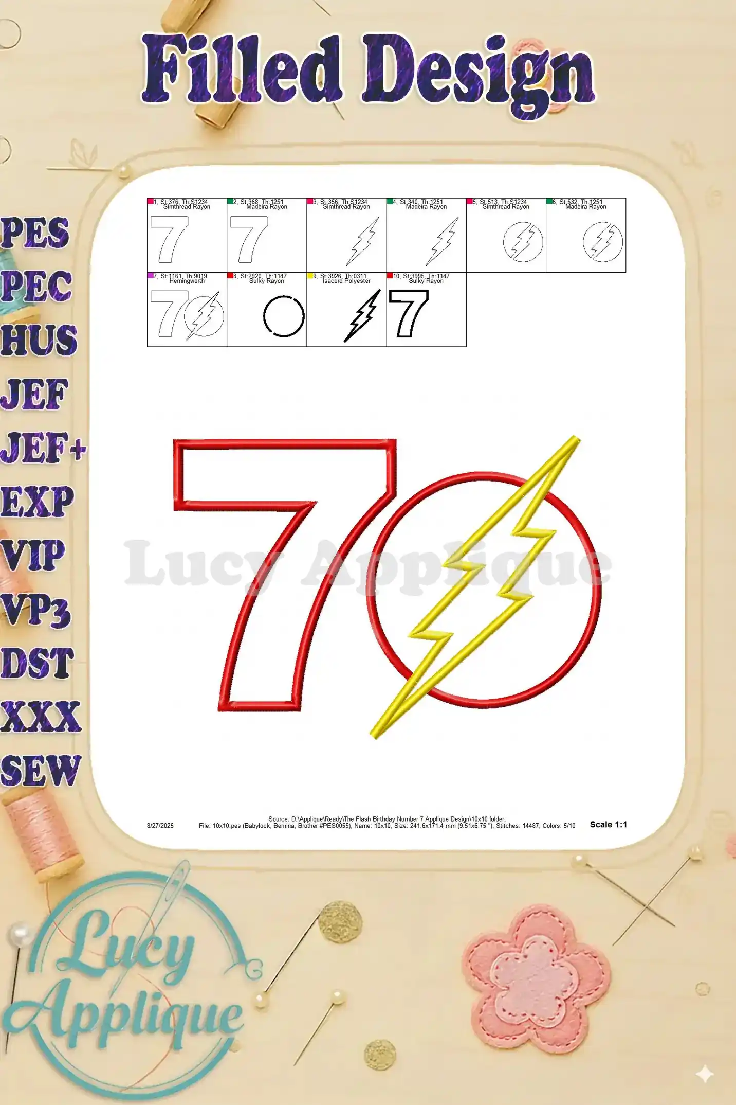The Flash Birthday Number 7 Applique Design – Instant Download