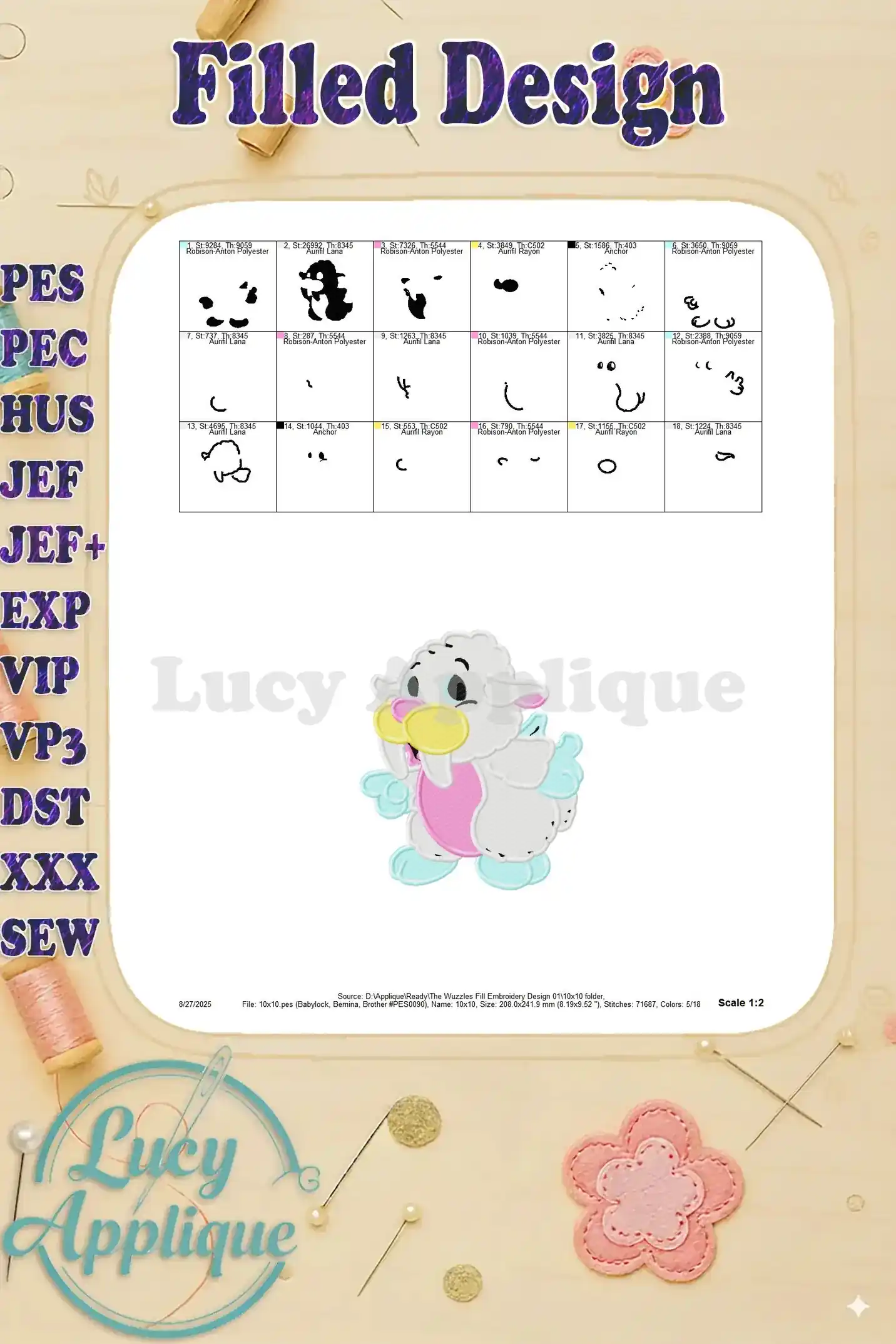 The Wuzzles Fill Embroidery Design 01 – Instant Download