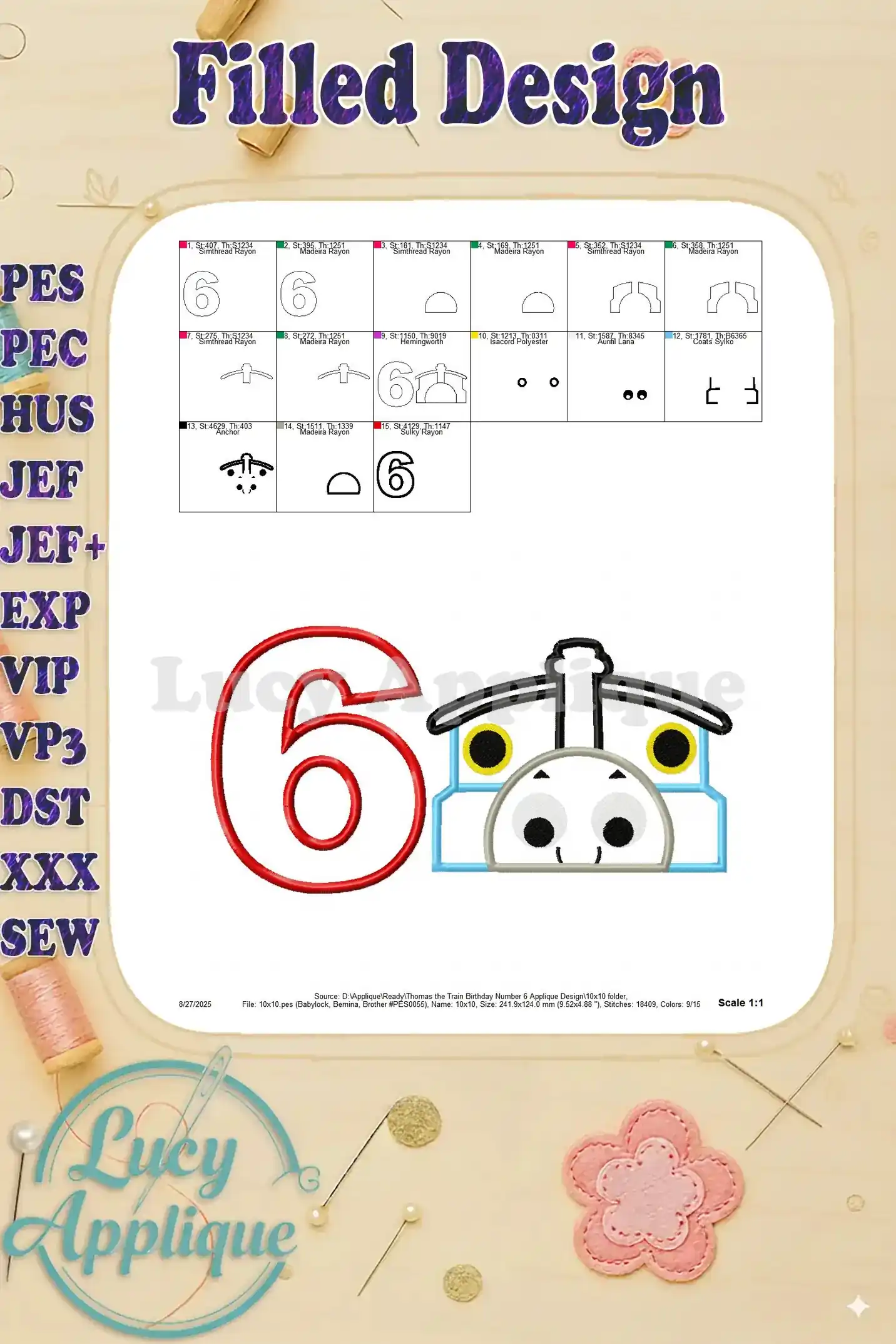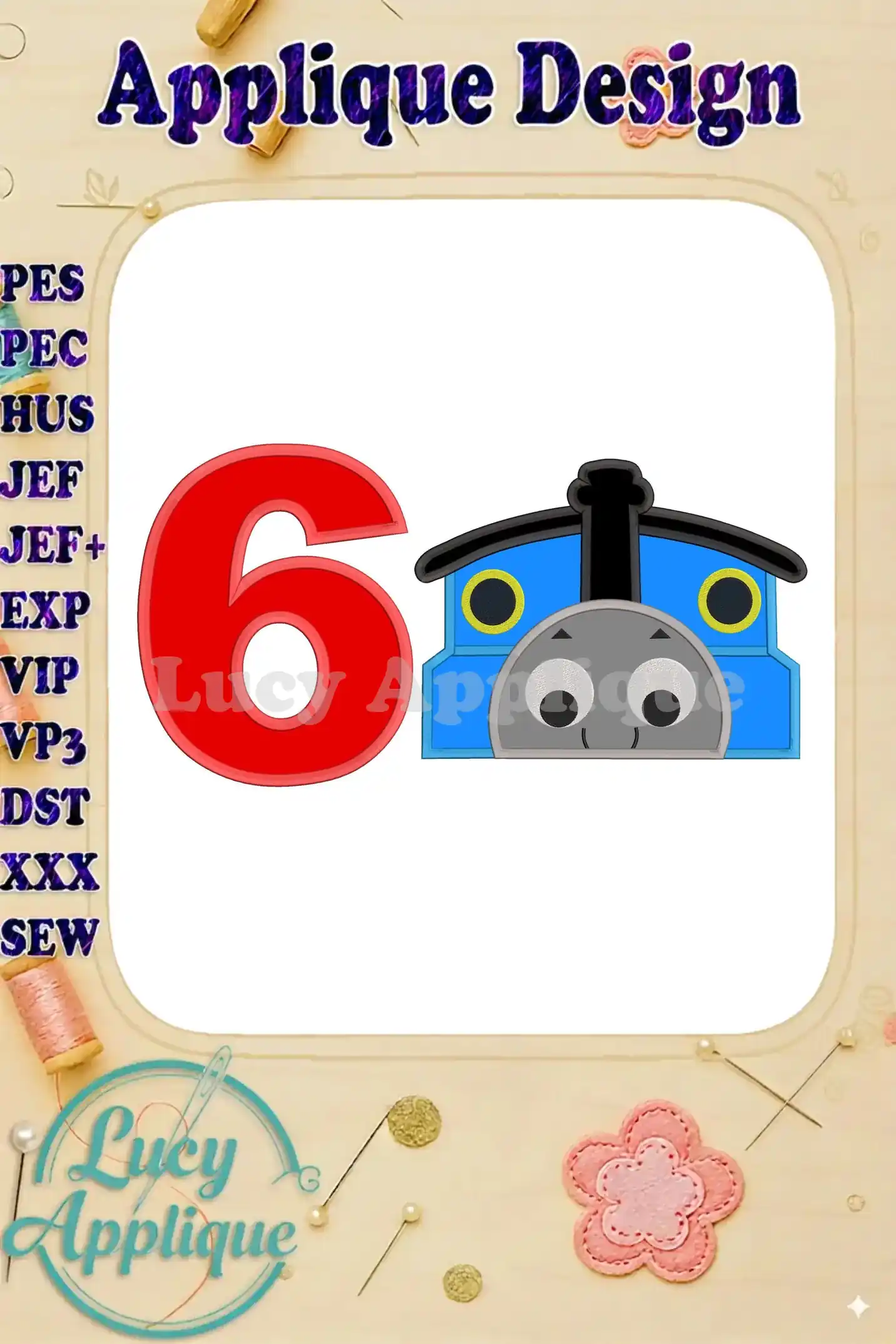 Thomas the Train Birthday Number 6 Applique Design – Instant Download