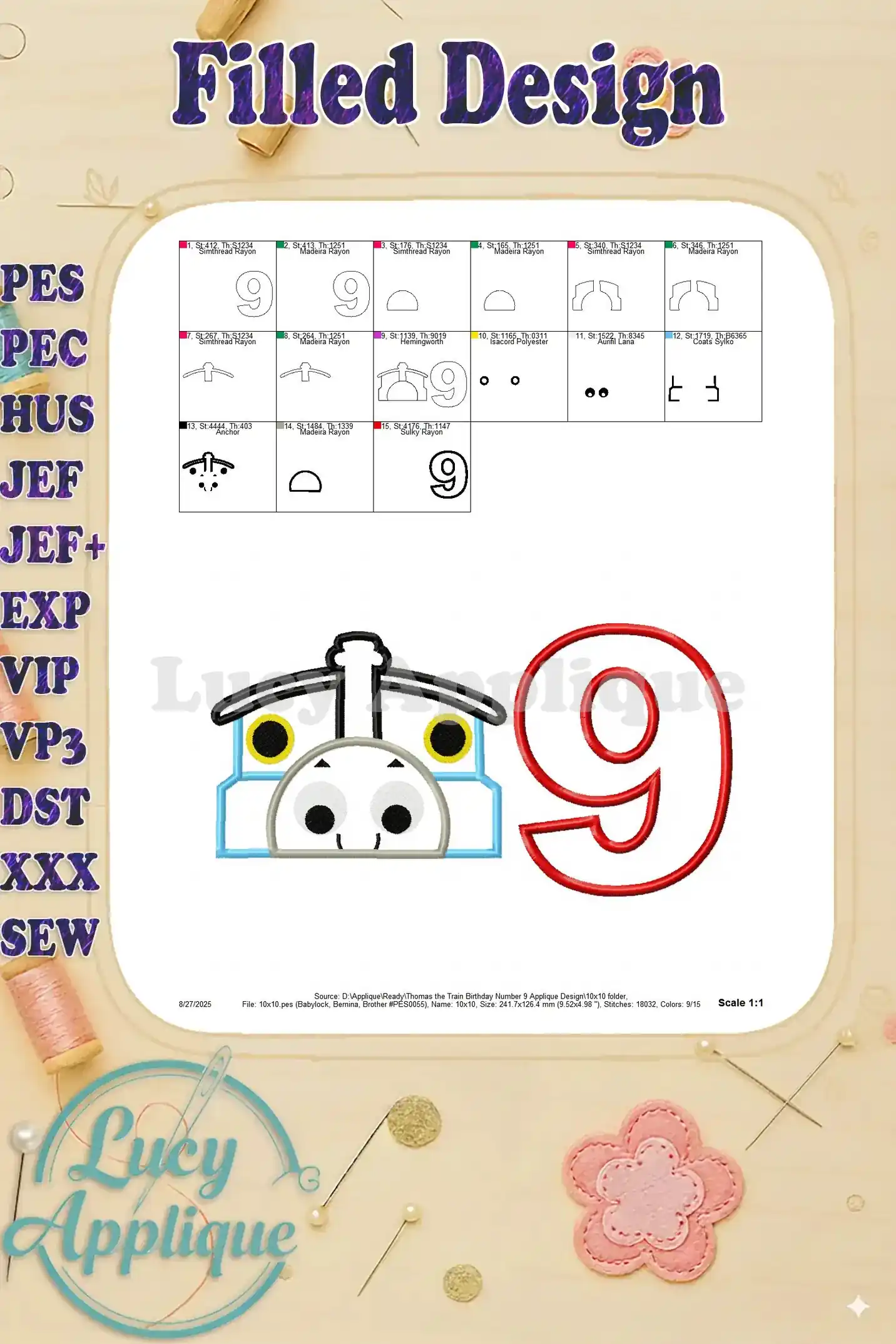 Thomas the Train Birthday Number 9 Applique Design – Instant Download