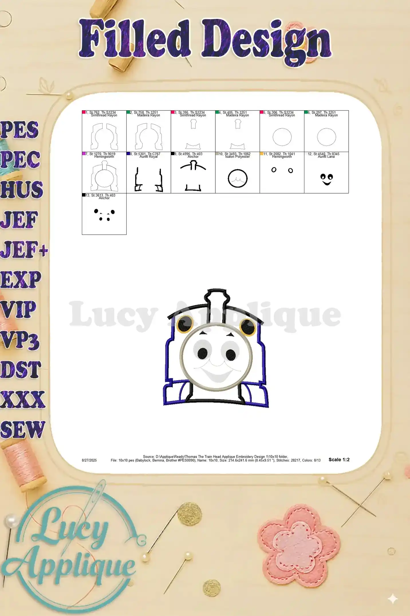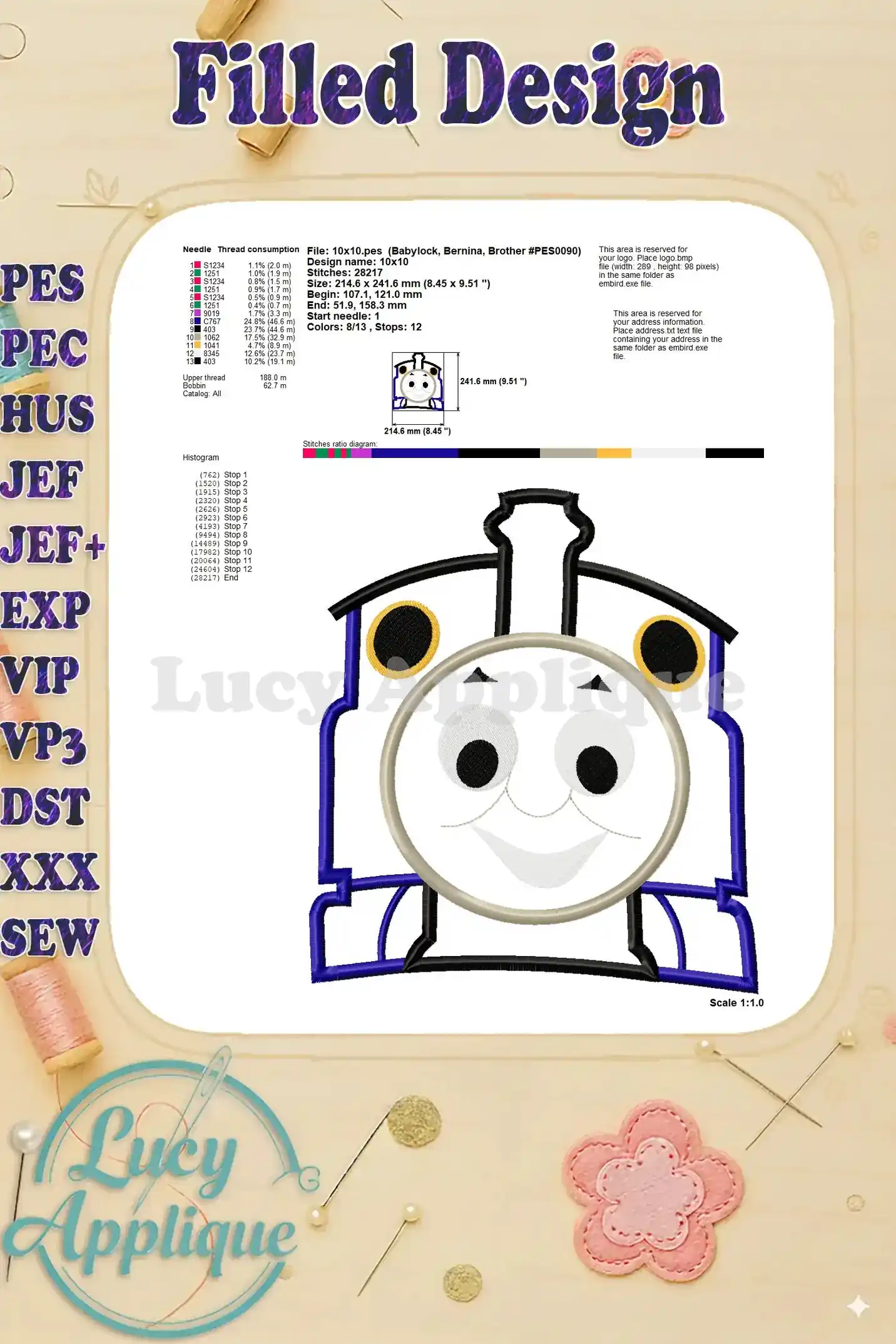 Thomas The Train Head Applique Embroidery Design 1 – Instant Download