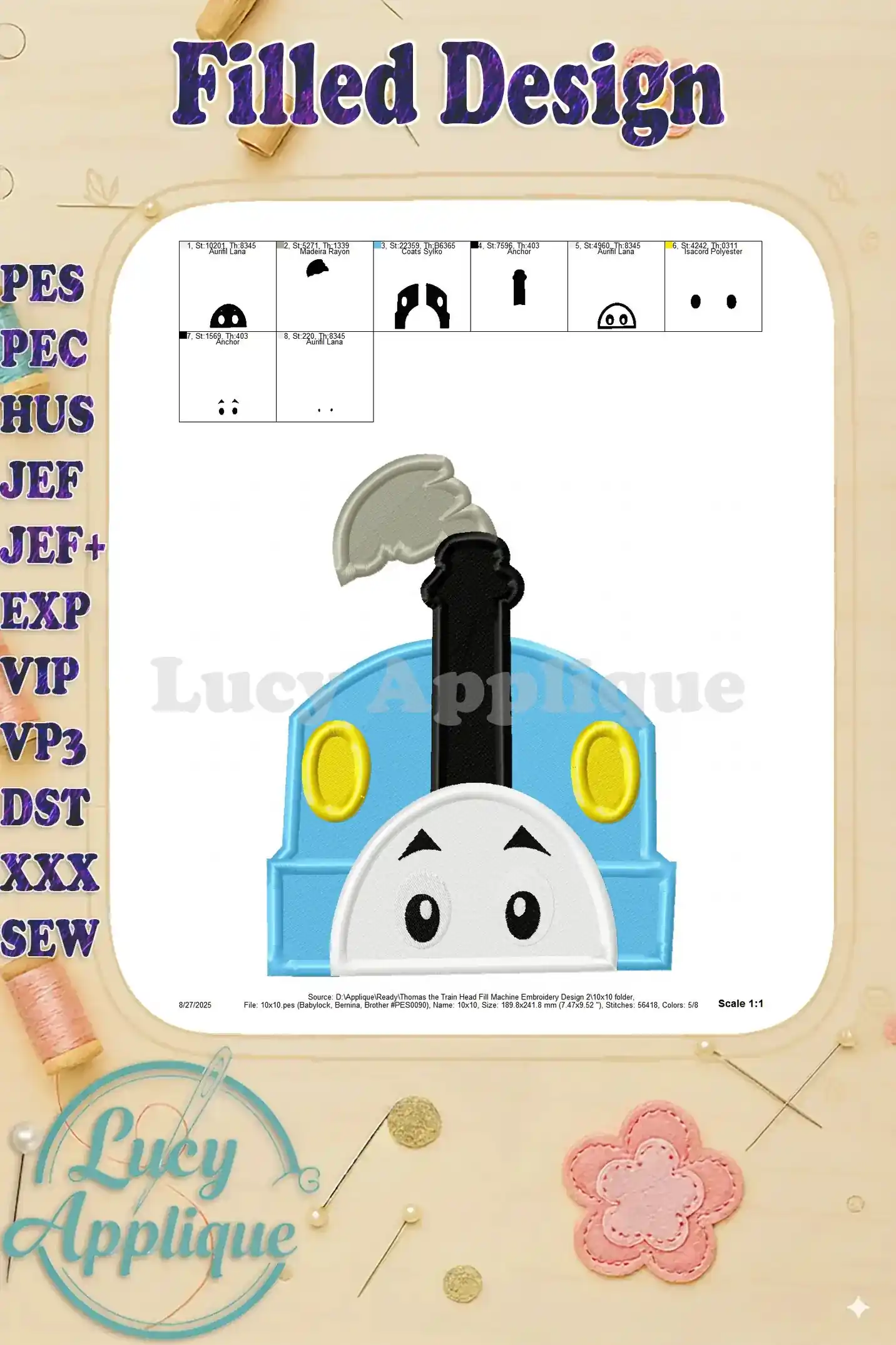 Thomas the Train Head Fill Machine Embroidery Design 2 – Instant Download