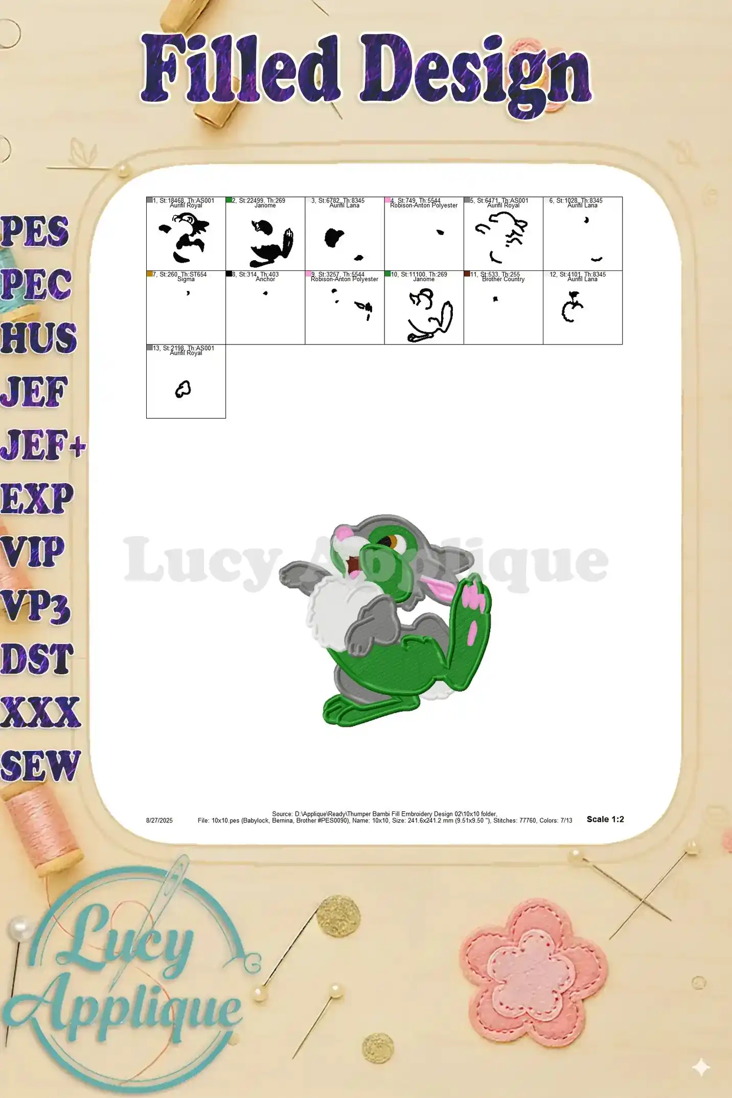 Thumper Bambi Fill Embroidery Design 02 – Instant Download