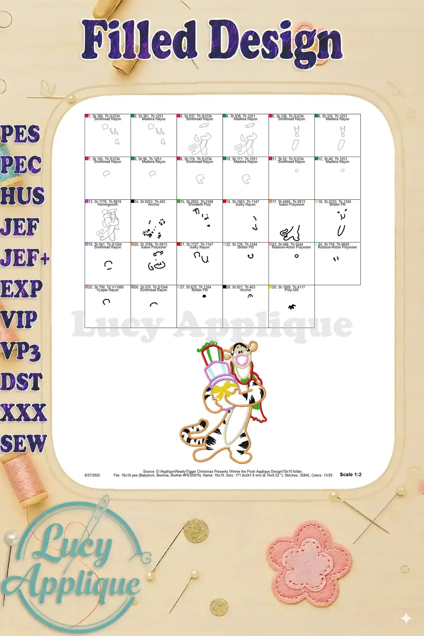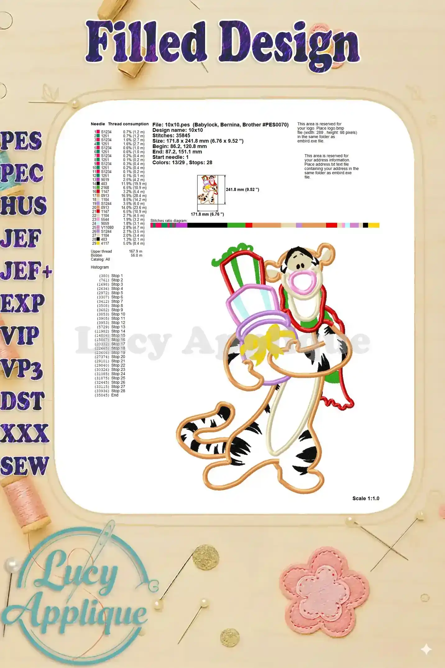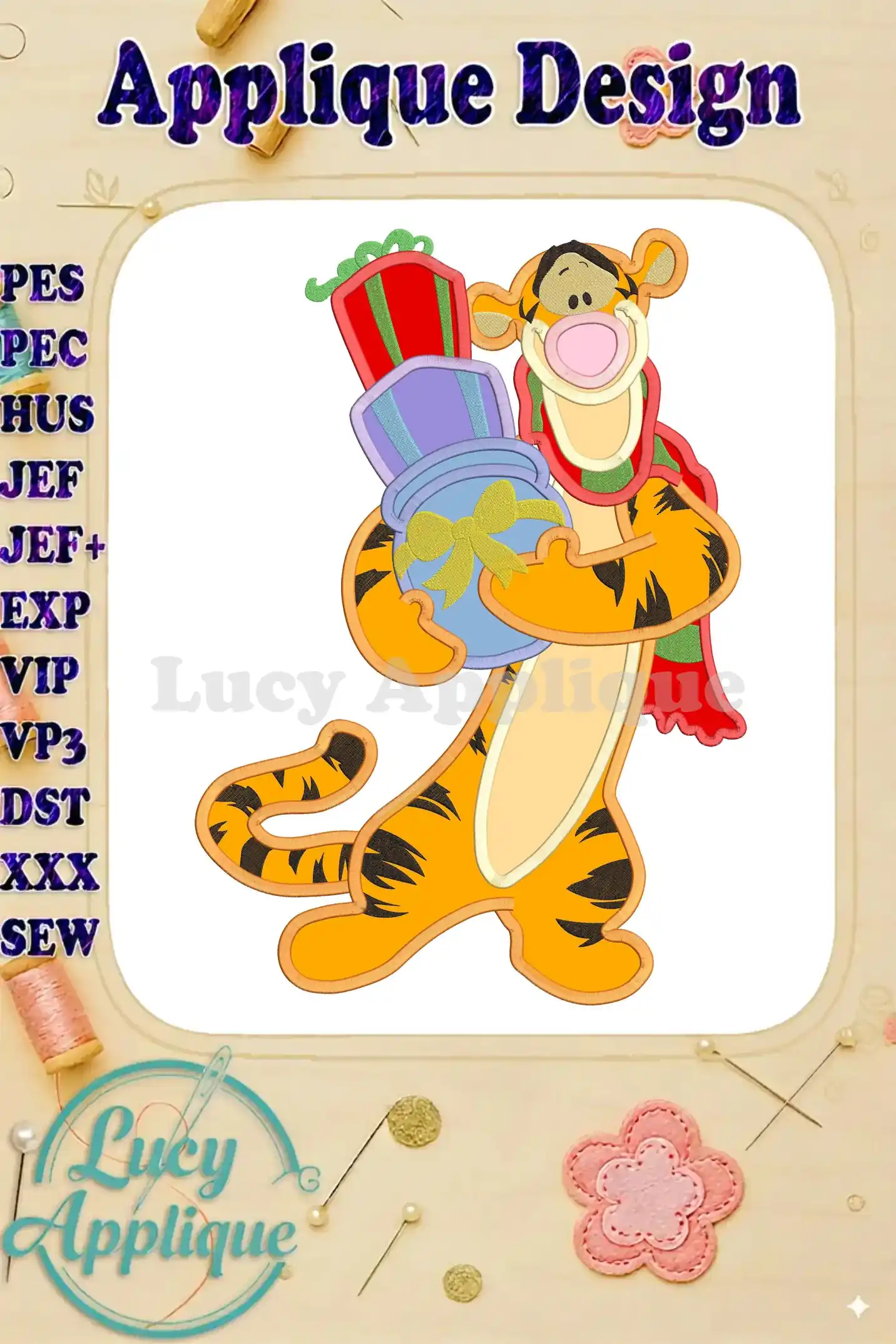 Tigger Christmas Presents Winnie the Pooh Applique Design – Instant Download