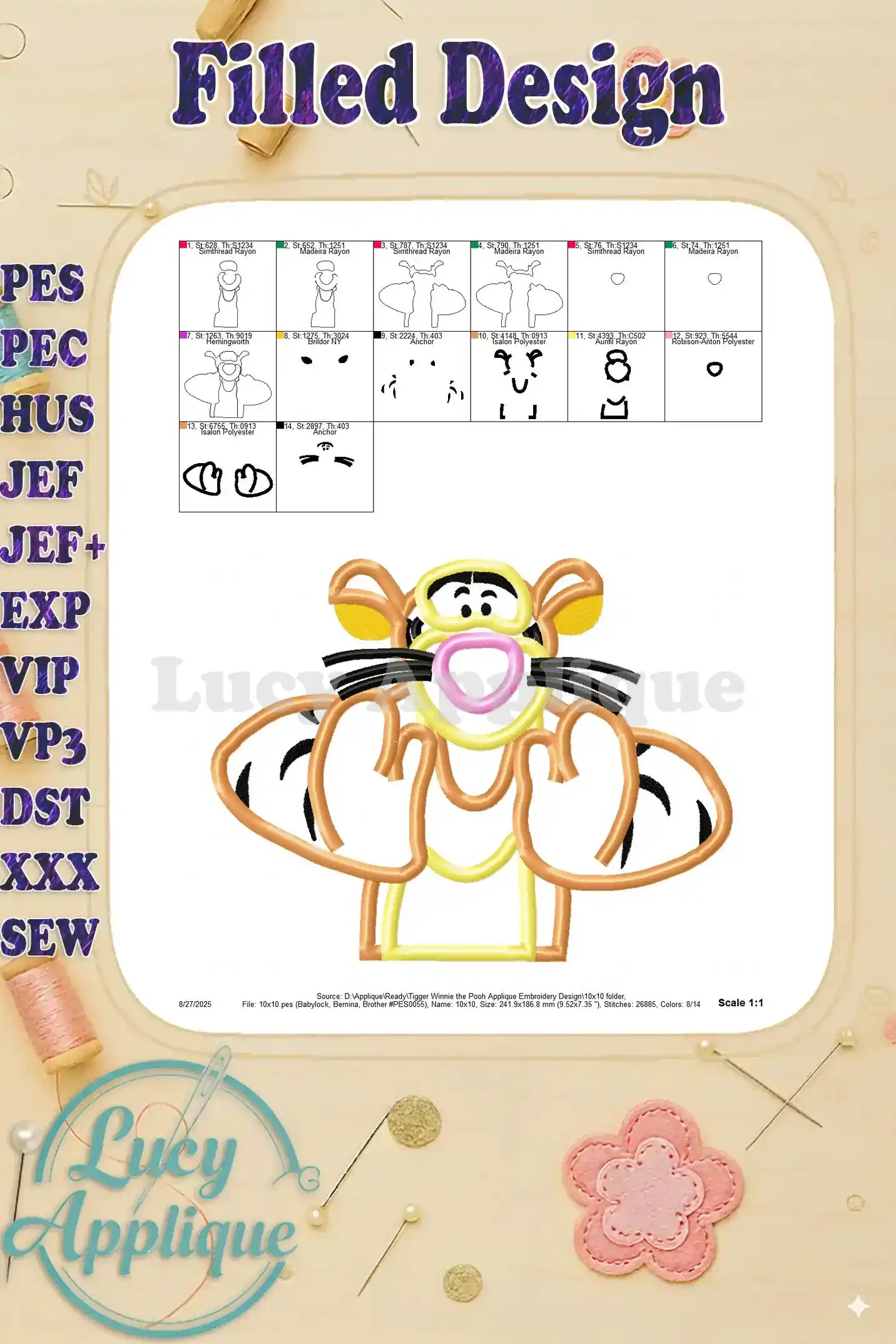 Tigger Winnie the Pooh Applique Embroidery Design – Instant Download