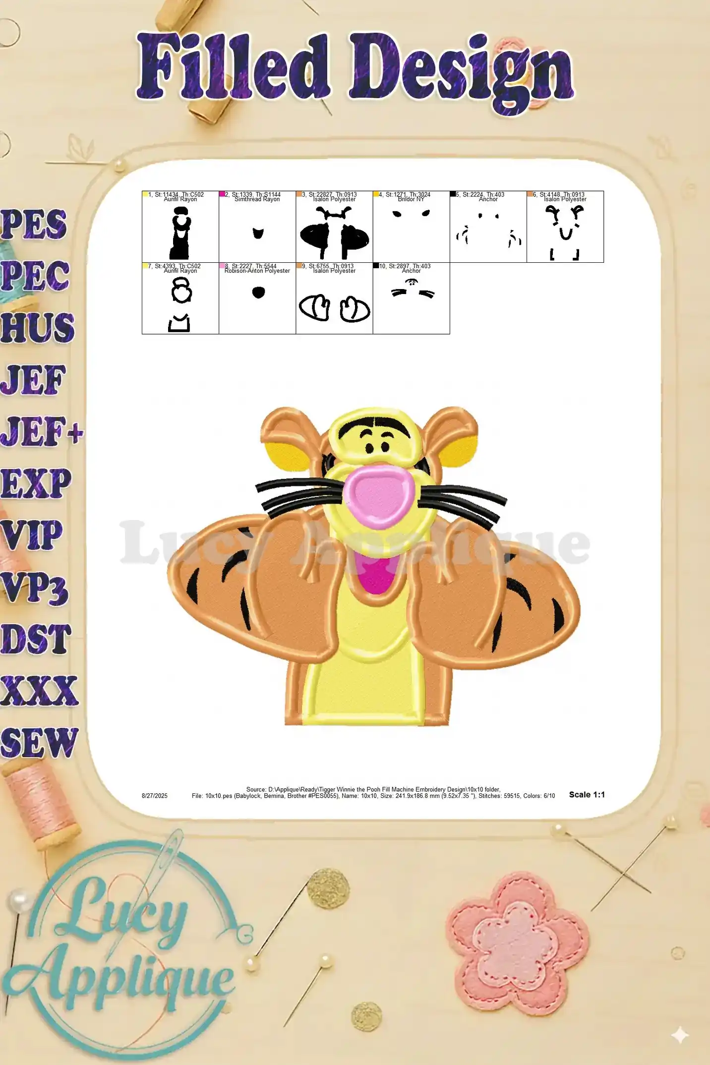 Tigger Winnie the Pooh Fill Machine Embroidery Design – Instant Download