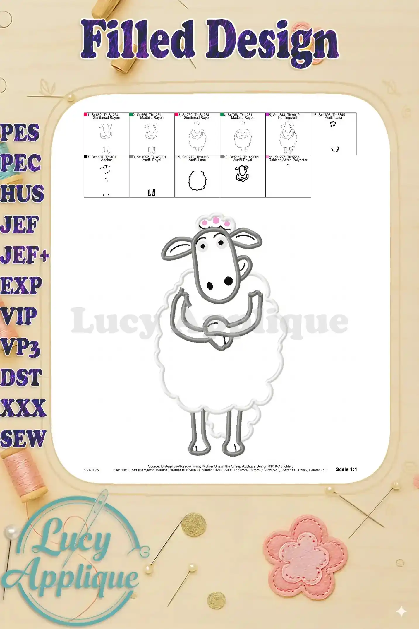 Timmy Mother Shaun the Sheep Applique Design 01 – Instant Download