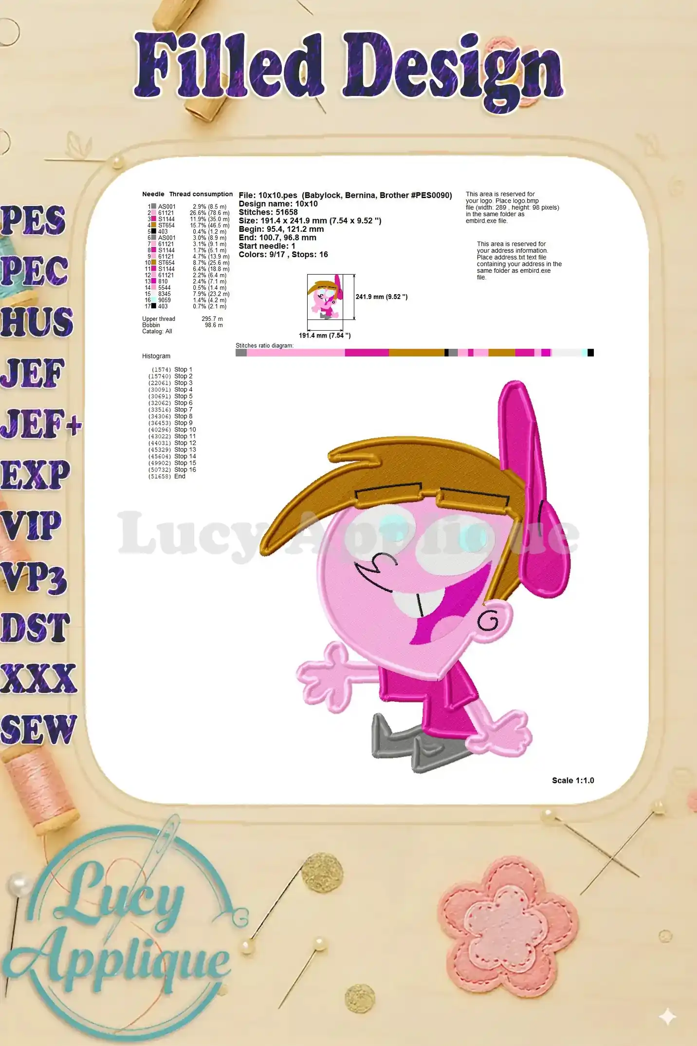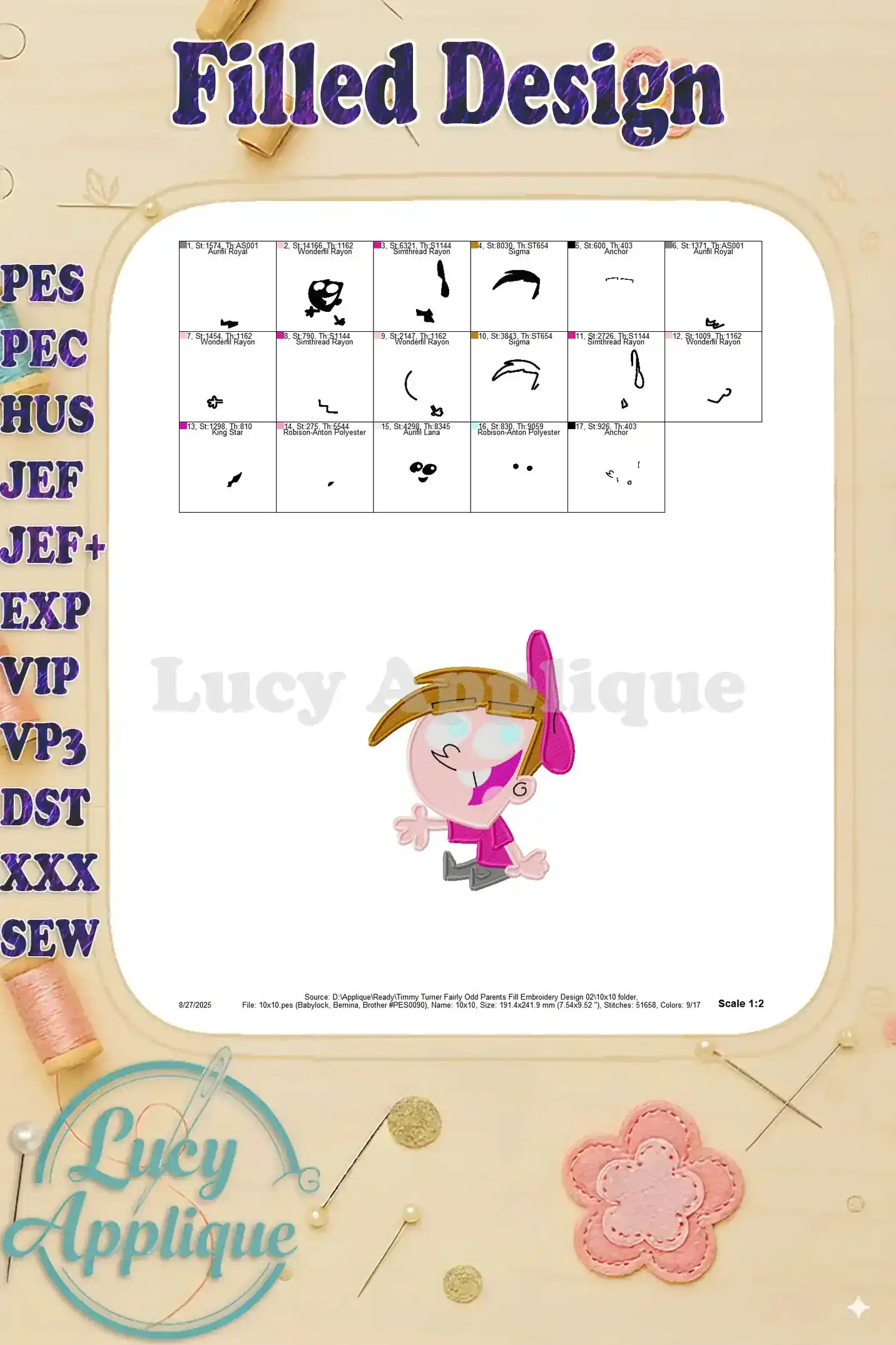 Timmy Turner Fairly Odd Parents Fill Embroidery Design 02 – Instant Download