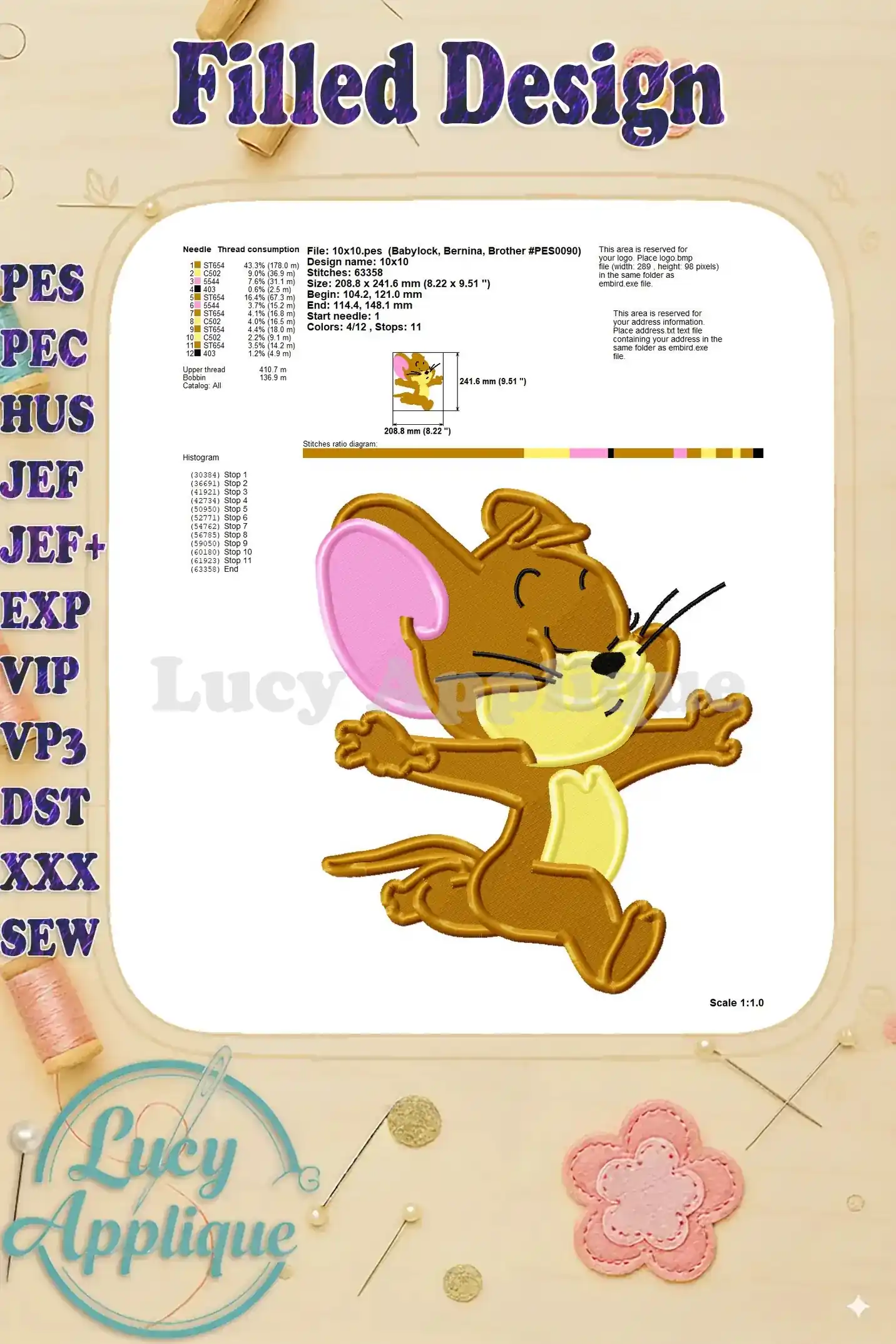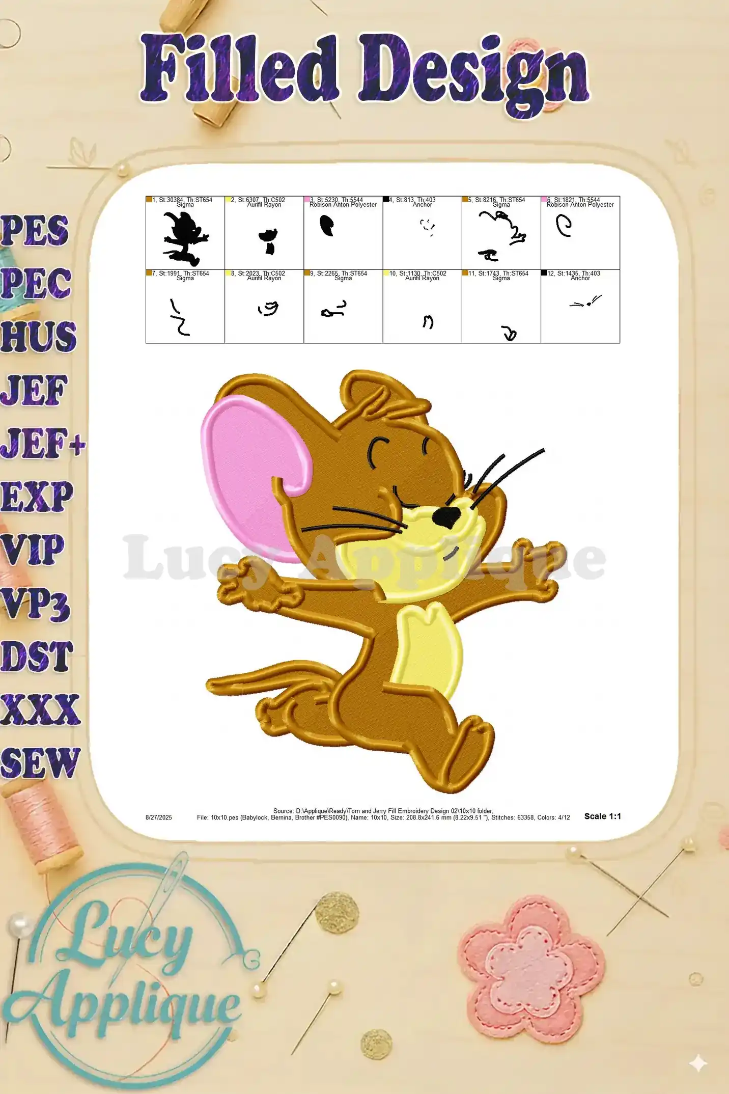Tom and Jerry Fill Embroidery Design 02 – Instant Download
