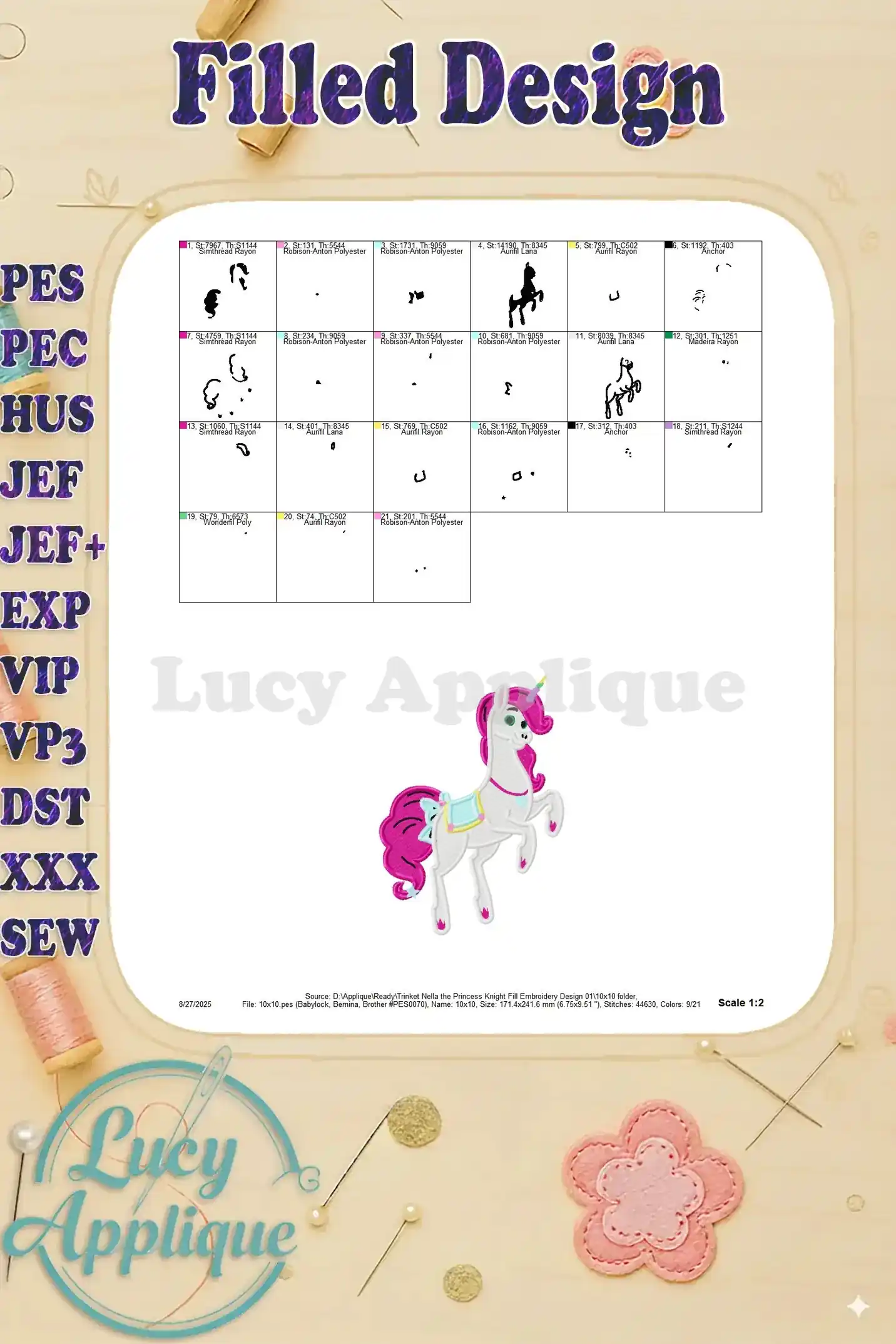 Trinket Nella the Princess Knight Fill Embroidery Design 01 – Instant Download
