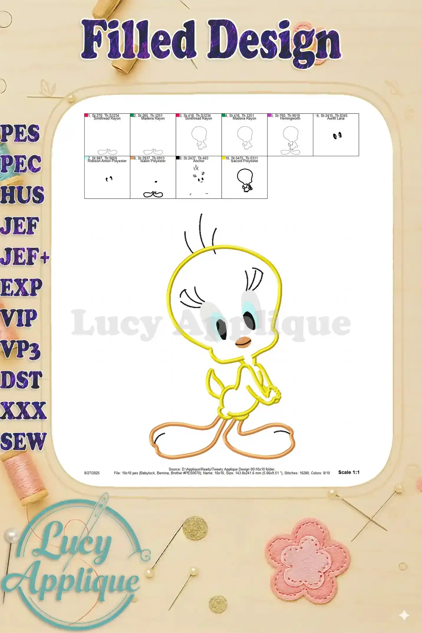 Tweety Applique Design 05 – Instant Download