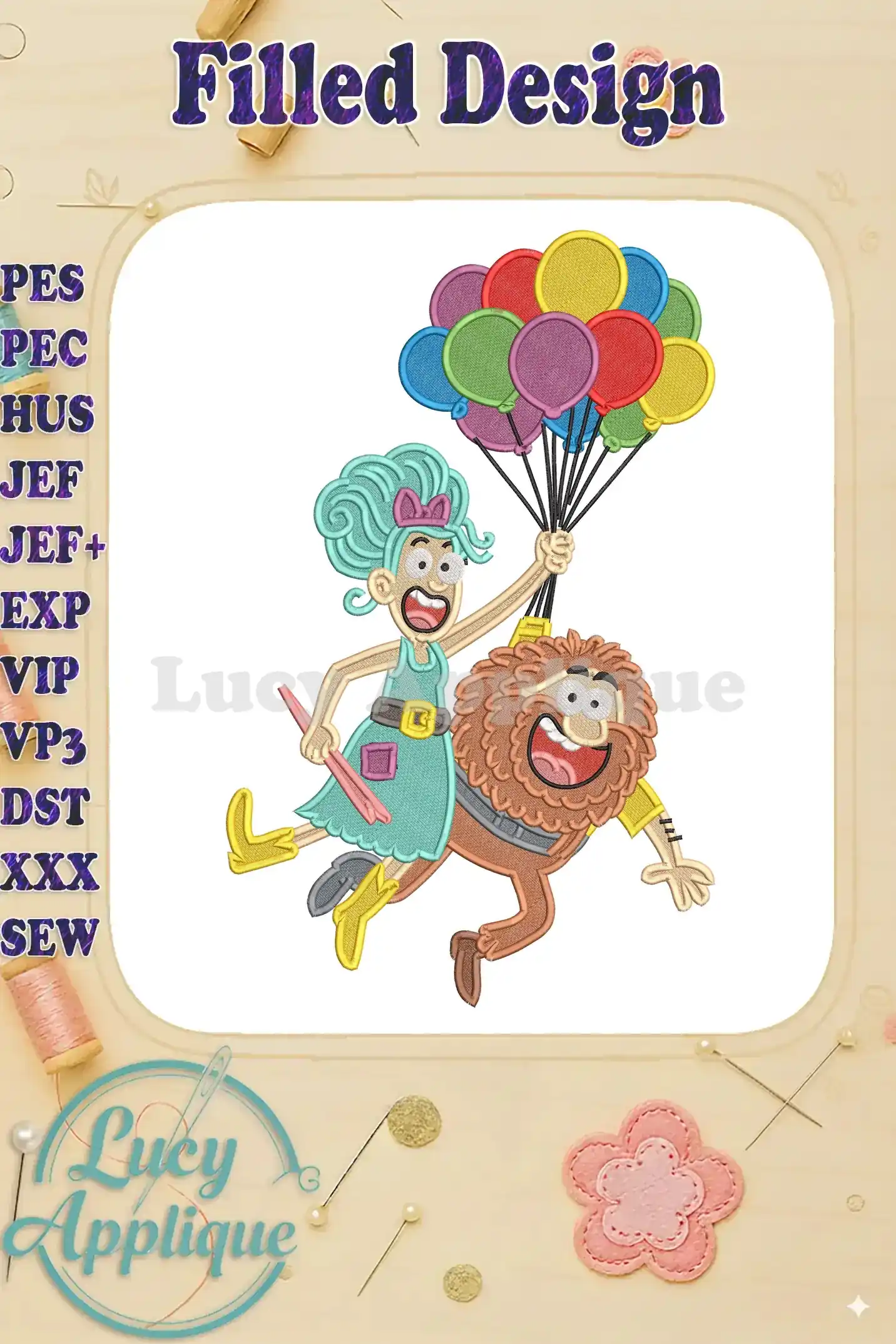 The Twits Mr and Mrs Flying with Balloons Fill Embroidery Designs