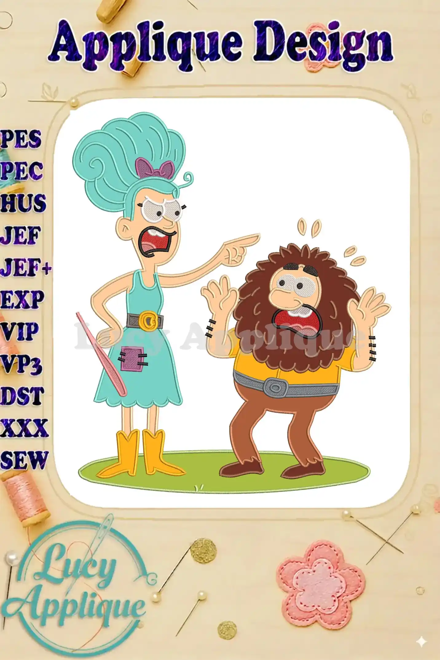 The Twits Mrs. Twit Scolding Mr. Twit Applique Embroidery Designs
