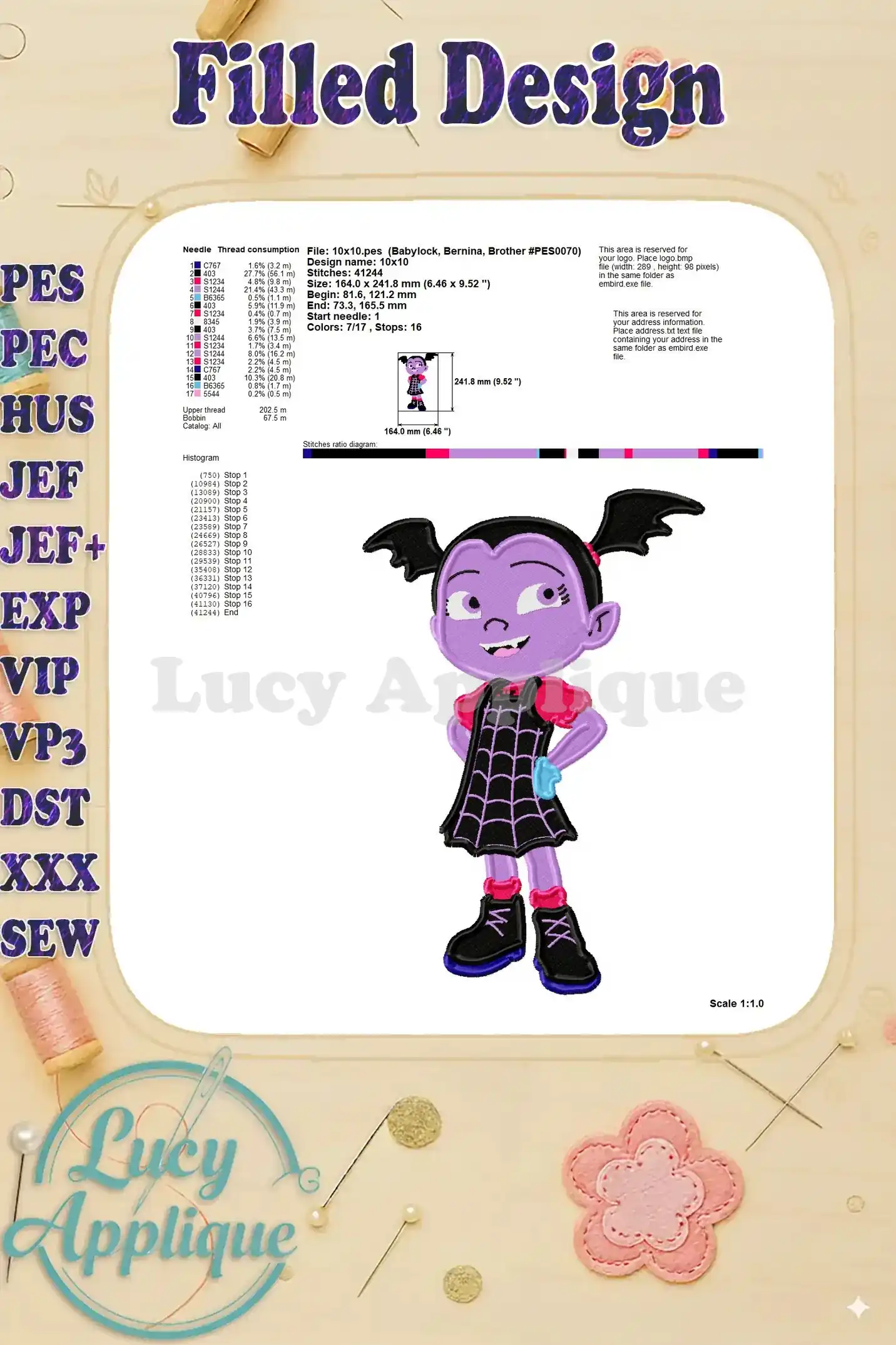 Vampirina Fill Embroidery Design 01 – Instant Download