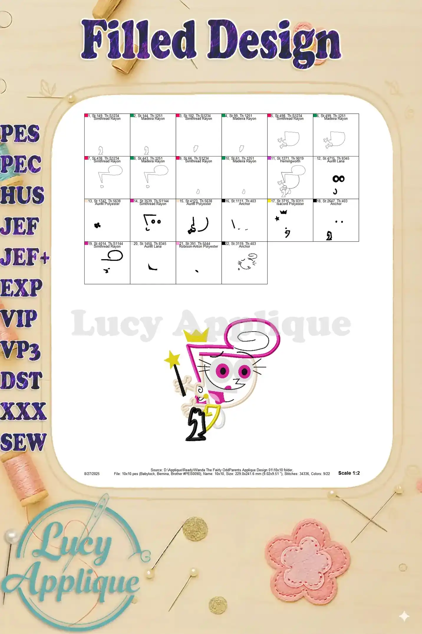 Wanda The Fairly OddParents Applique Design 01 – Instant Download