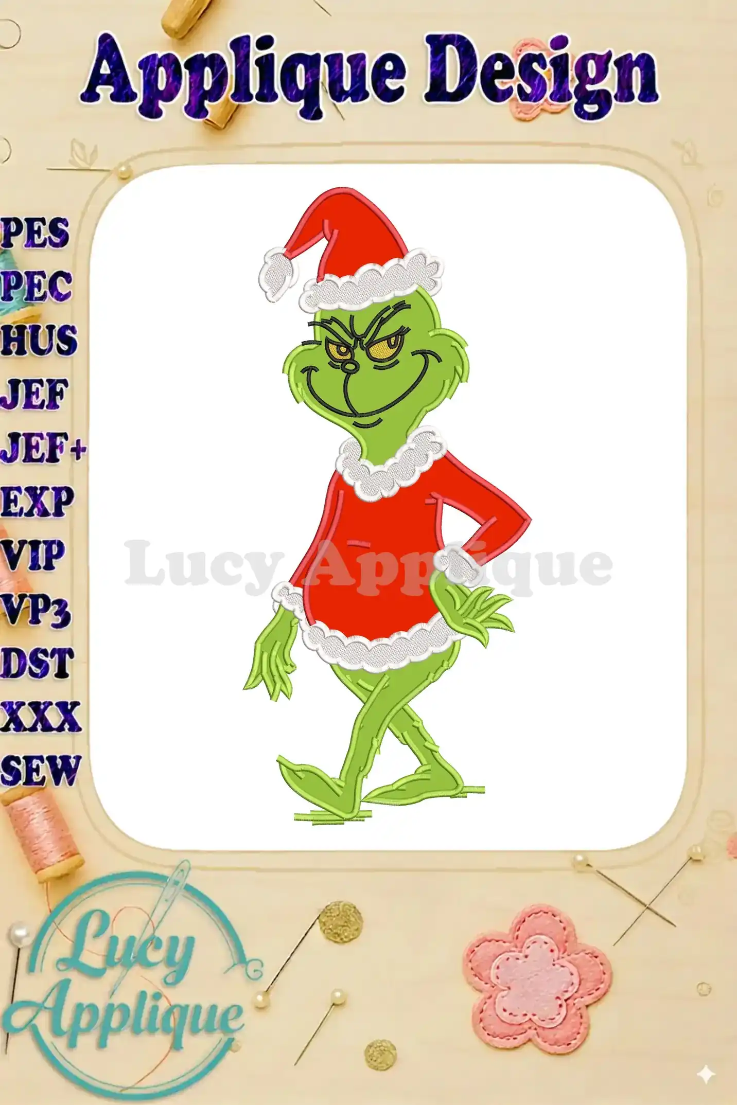 Whimsical Grinch in Santa Suit Christmas Applique embroidery designs