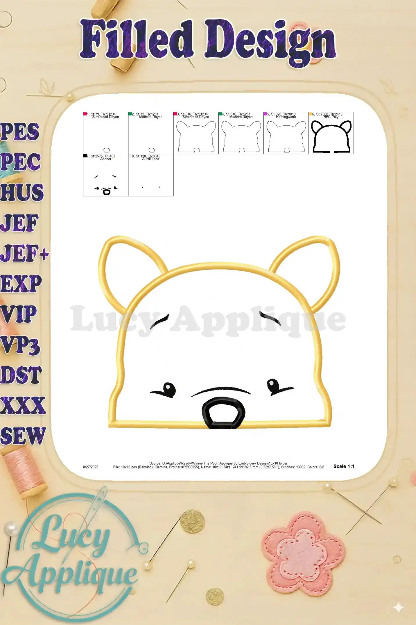 Winnie The Pooh Applique 03 Embroidery Design – Instant Download