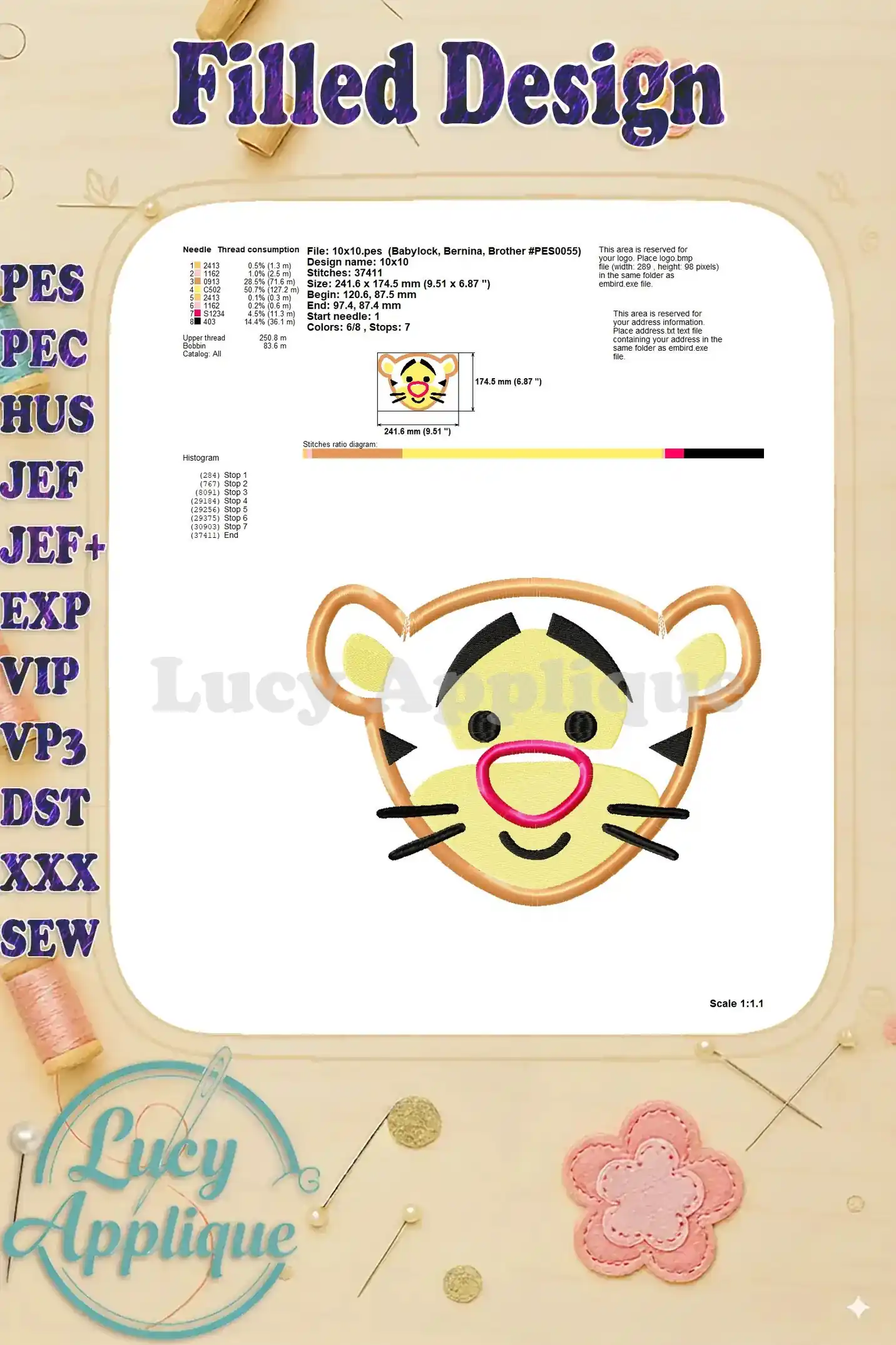 Winnie the Pooh Tigger 01 Applique Embroidery Design – Instant Download