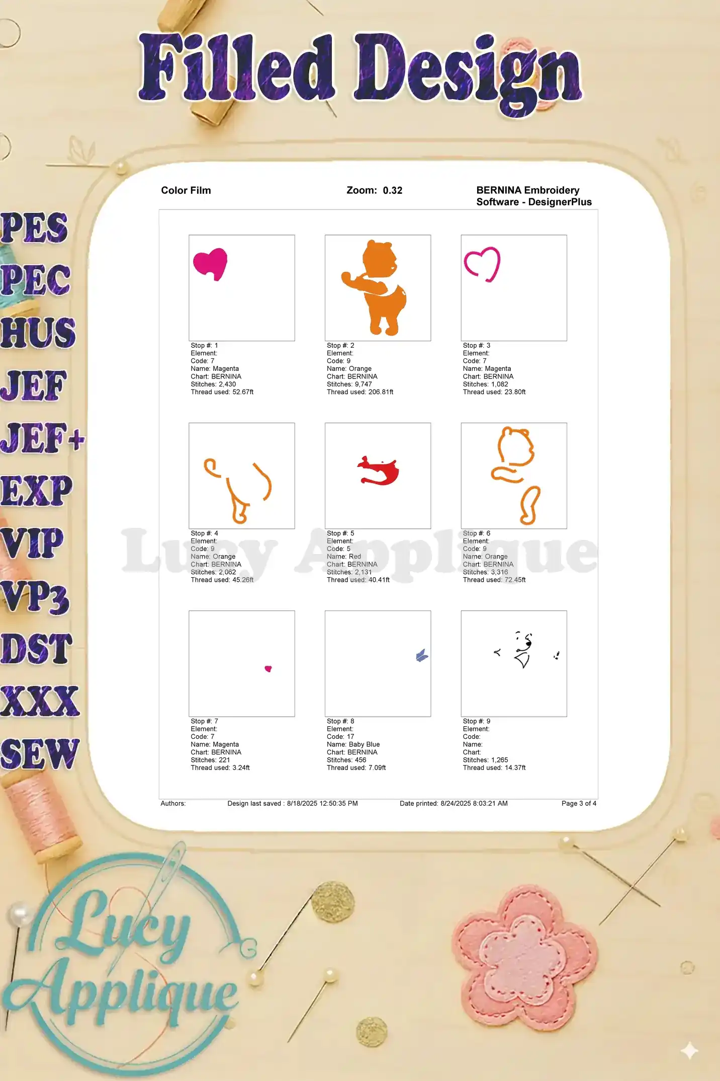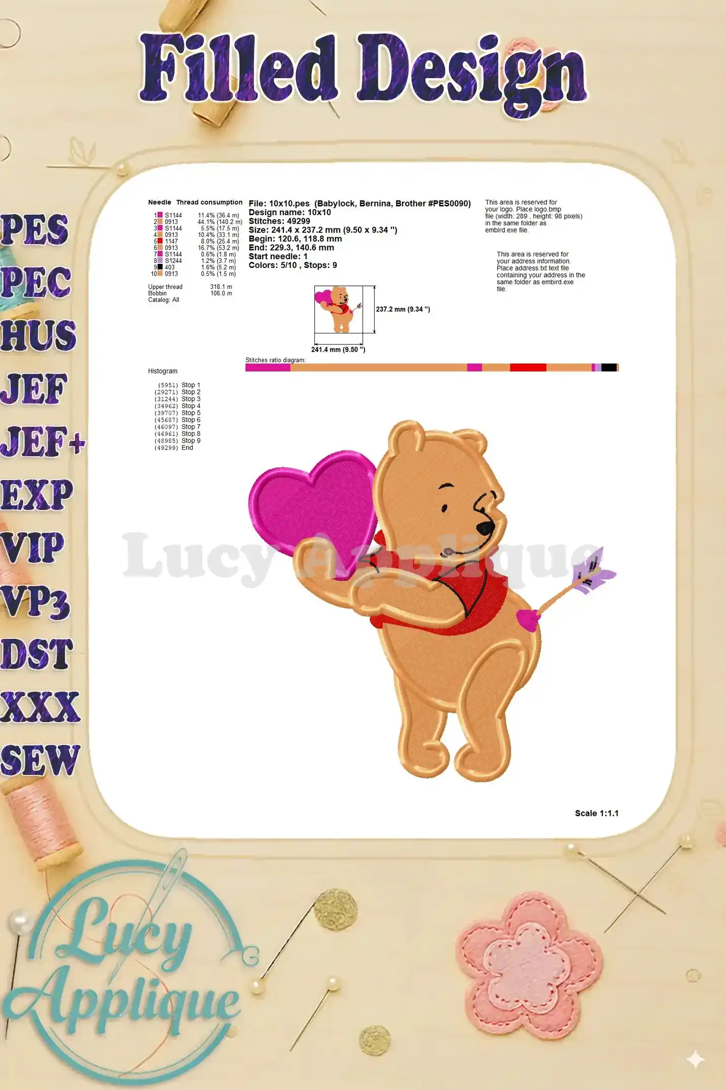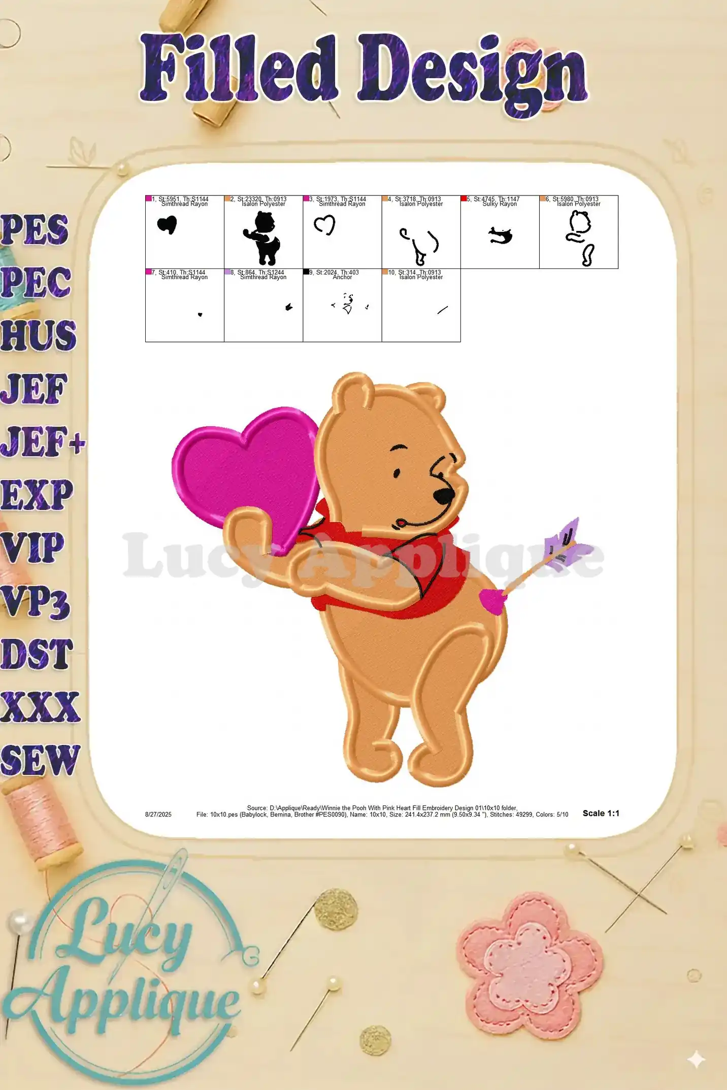 Winnie the Pooh With Pink Heart Fill Embroidery Design 01 – Instant Download