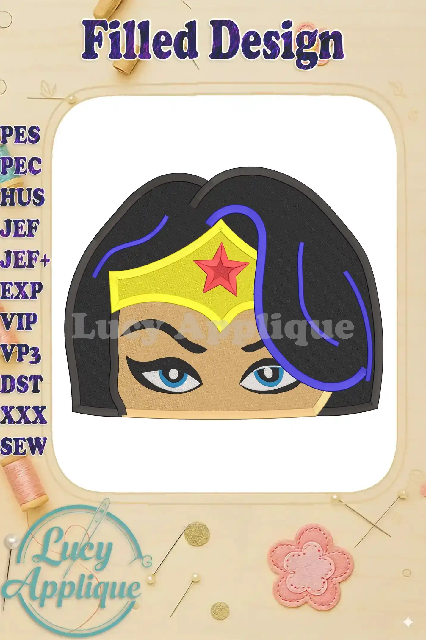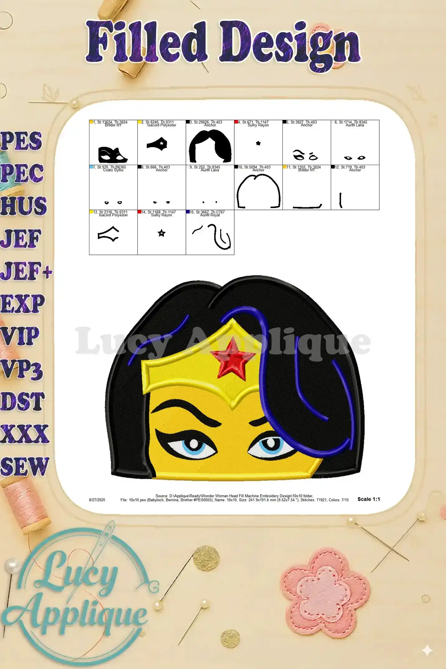 Wonder Woman Head Fill Machine Embroidery Design – Instant Download