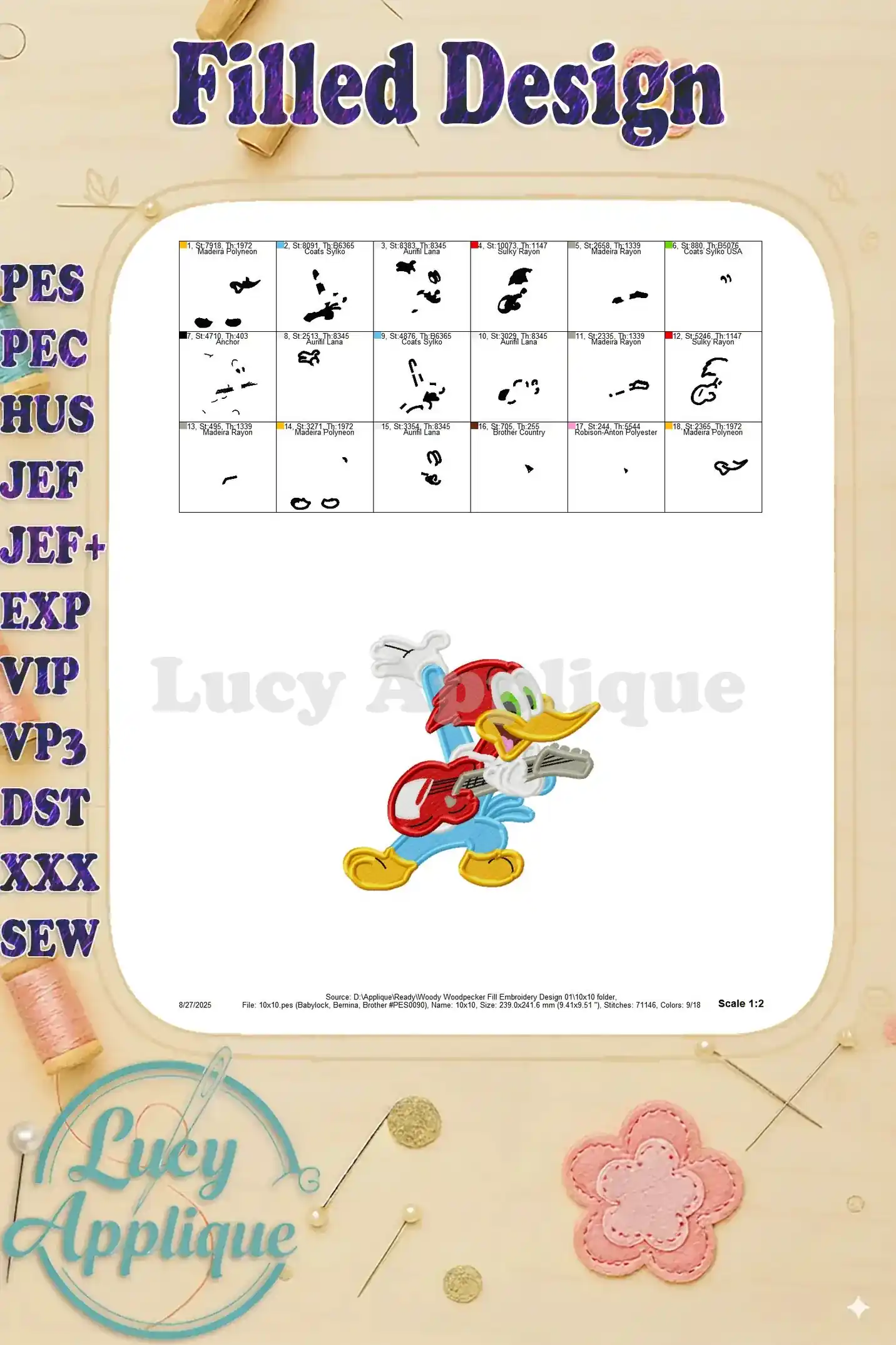 Woody Woodpecker Fill Embroidery Design 01 – Instant Download