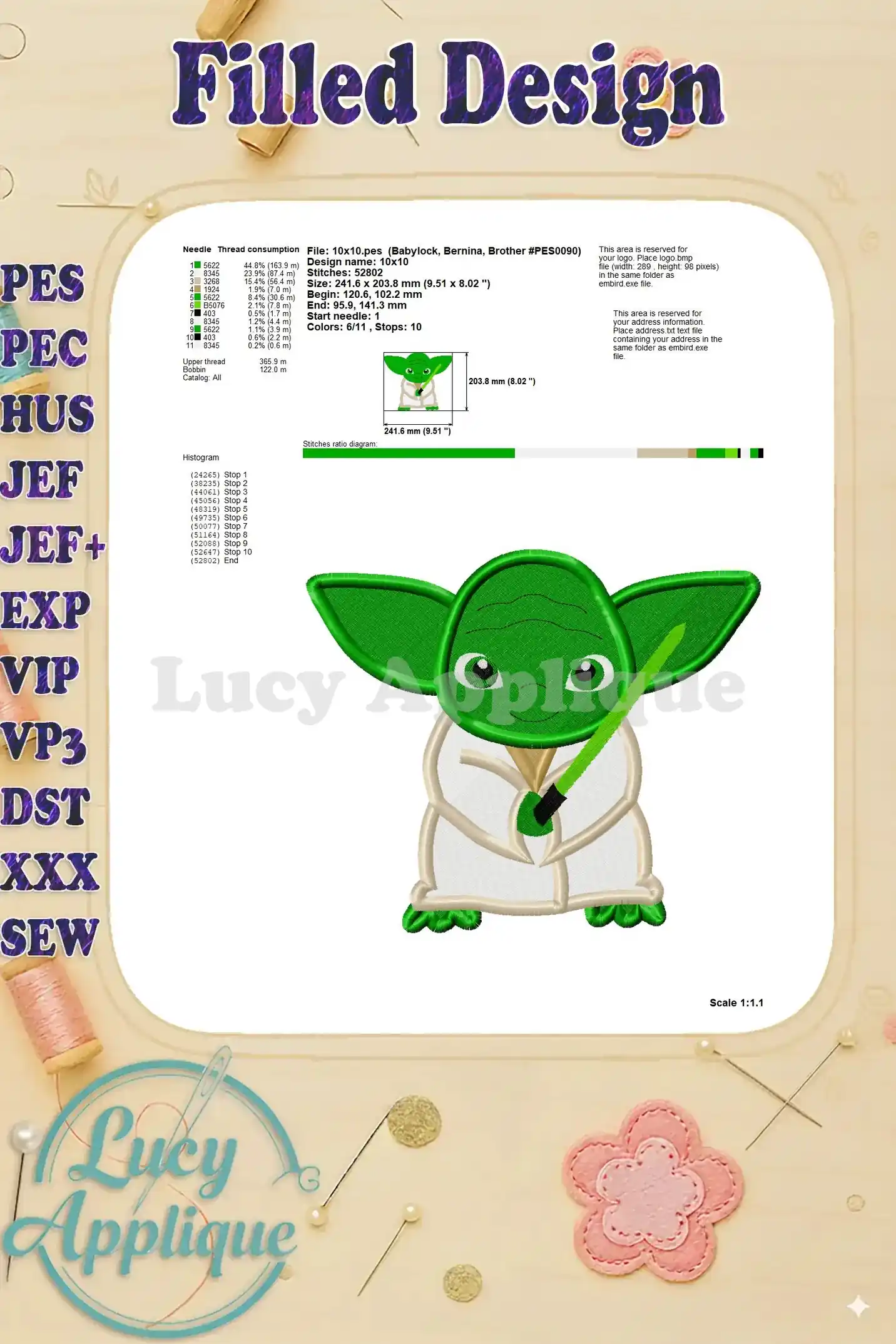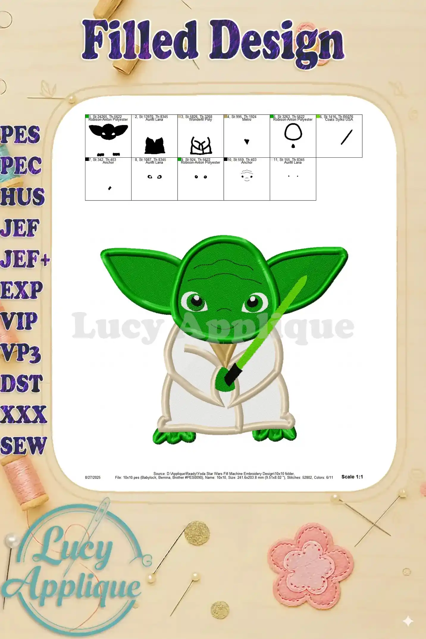 Yoda Star Wars Fill Machine Embroidery Design – Instant Download