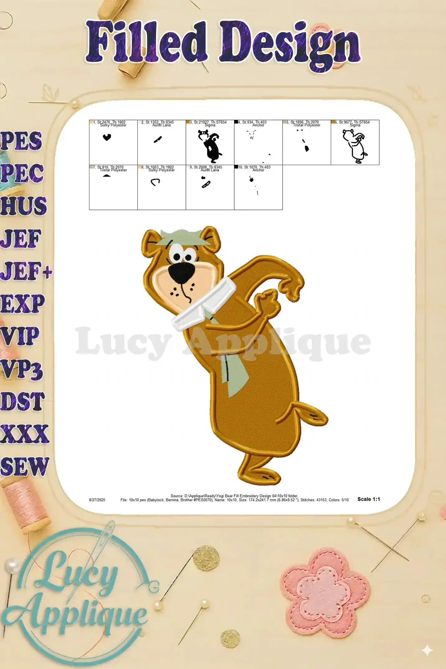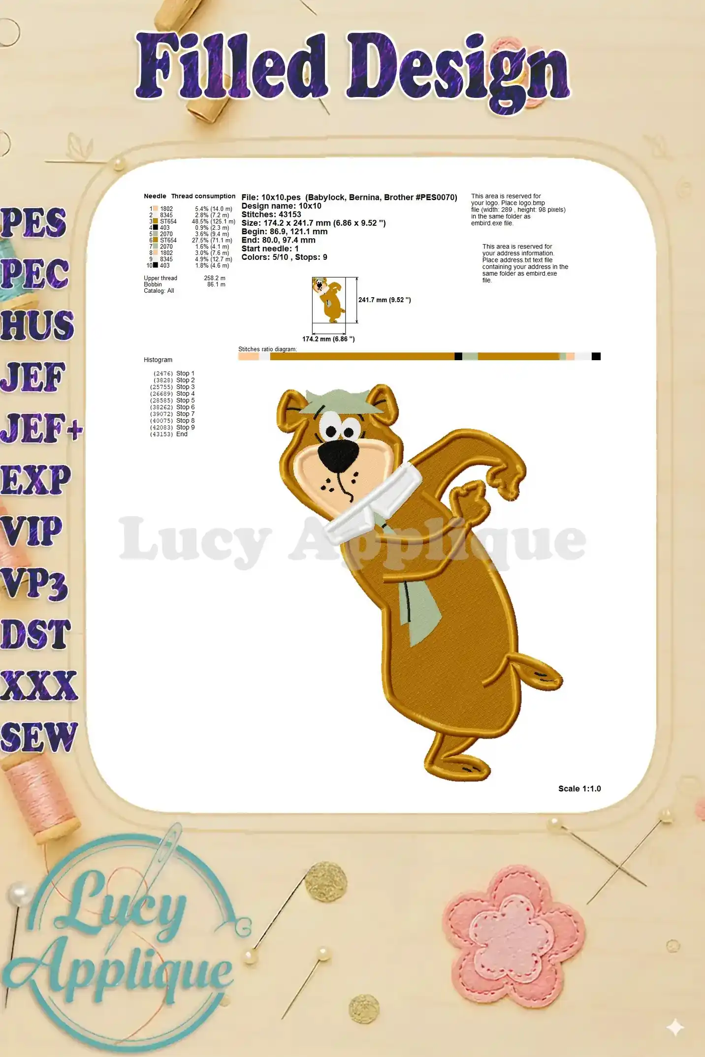 Yogi Bear Fill Embroidery Design 04 – Instant Download