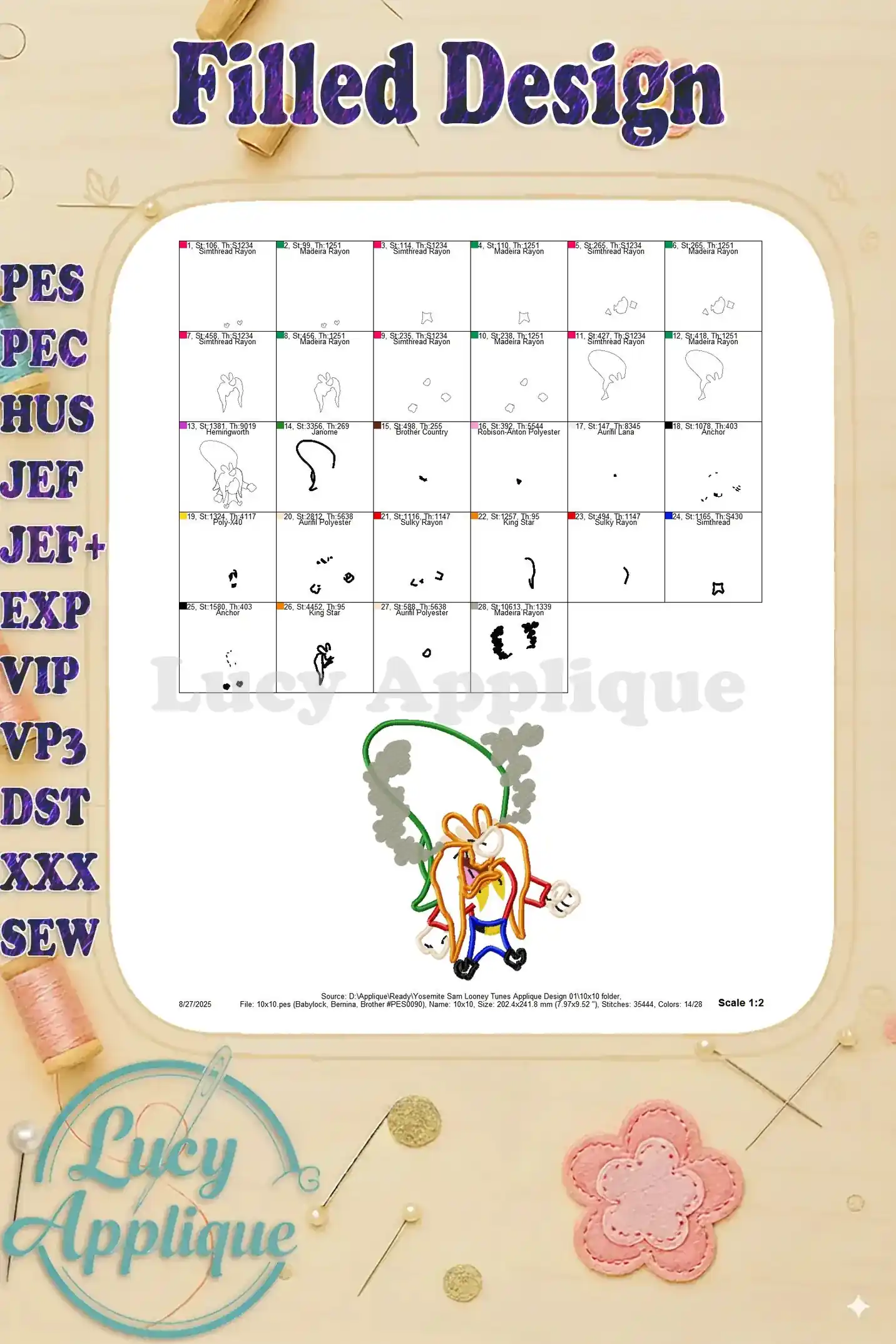 Yosemite Sam Looney Tunes Applique Design 01 – Instant Download