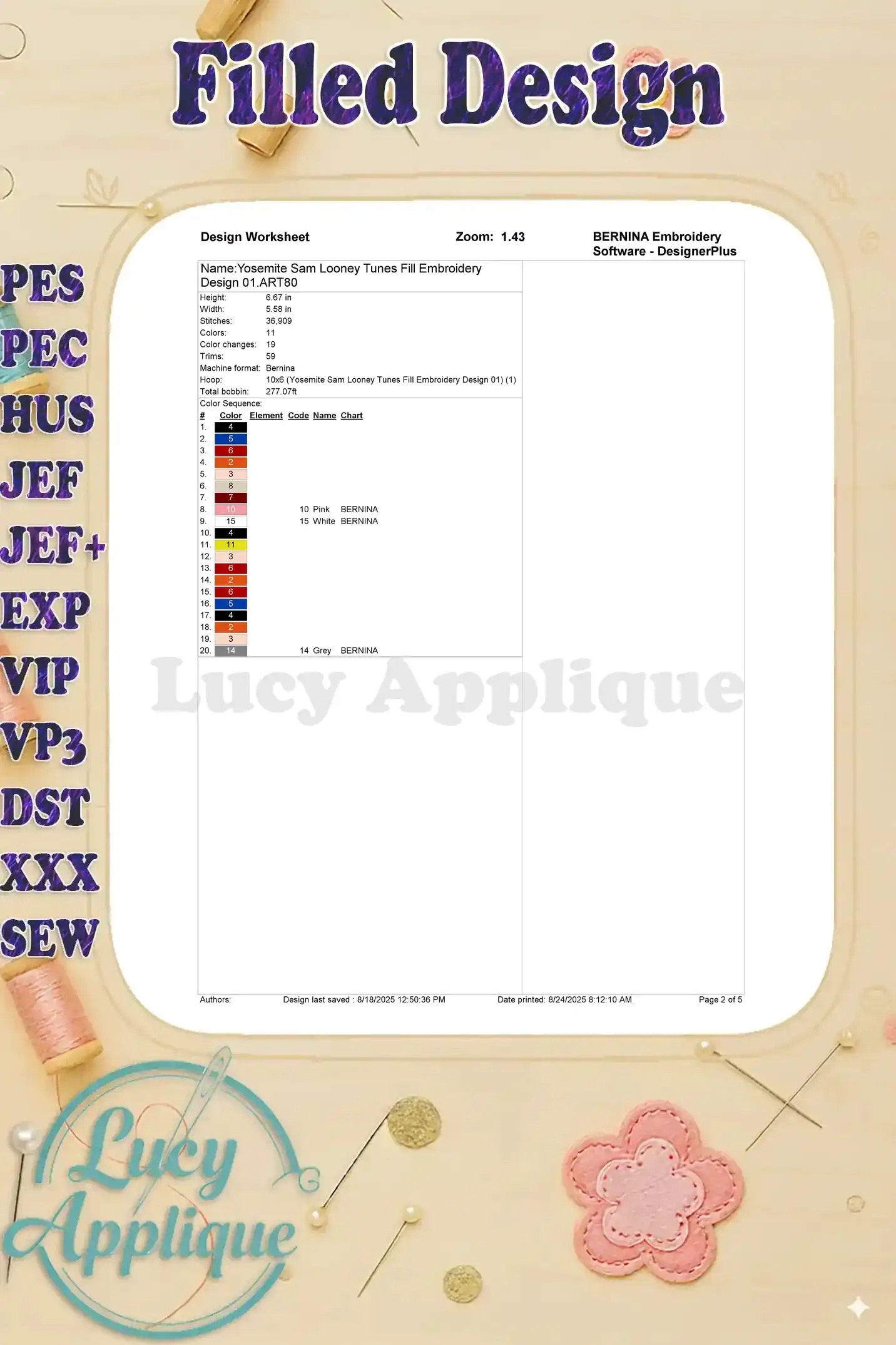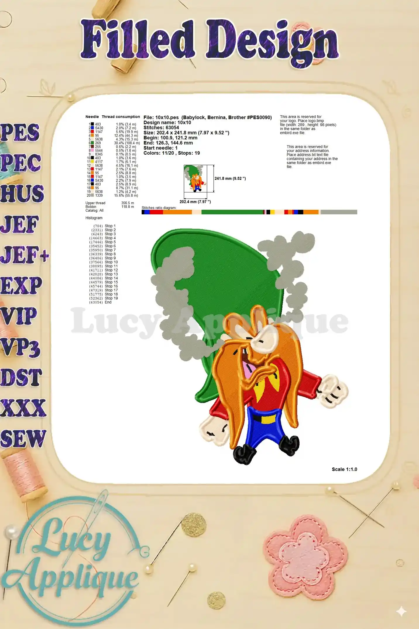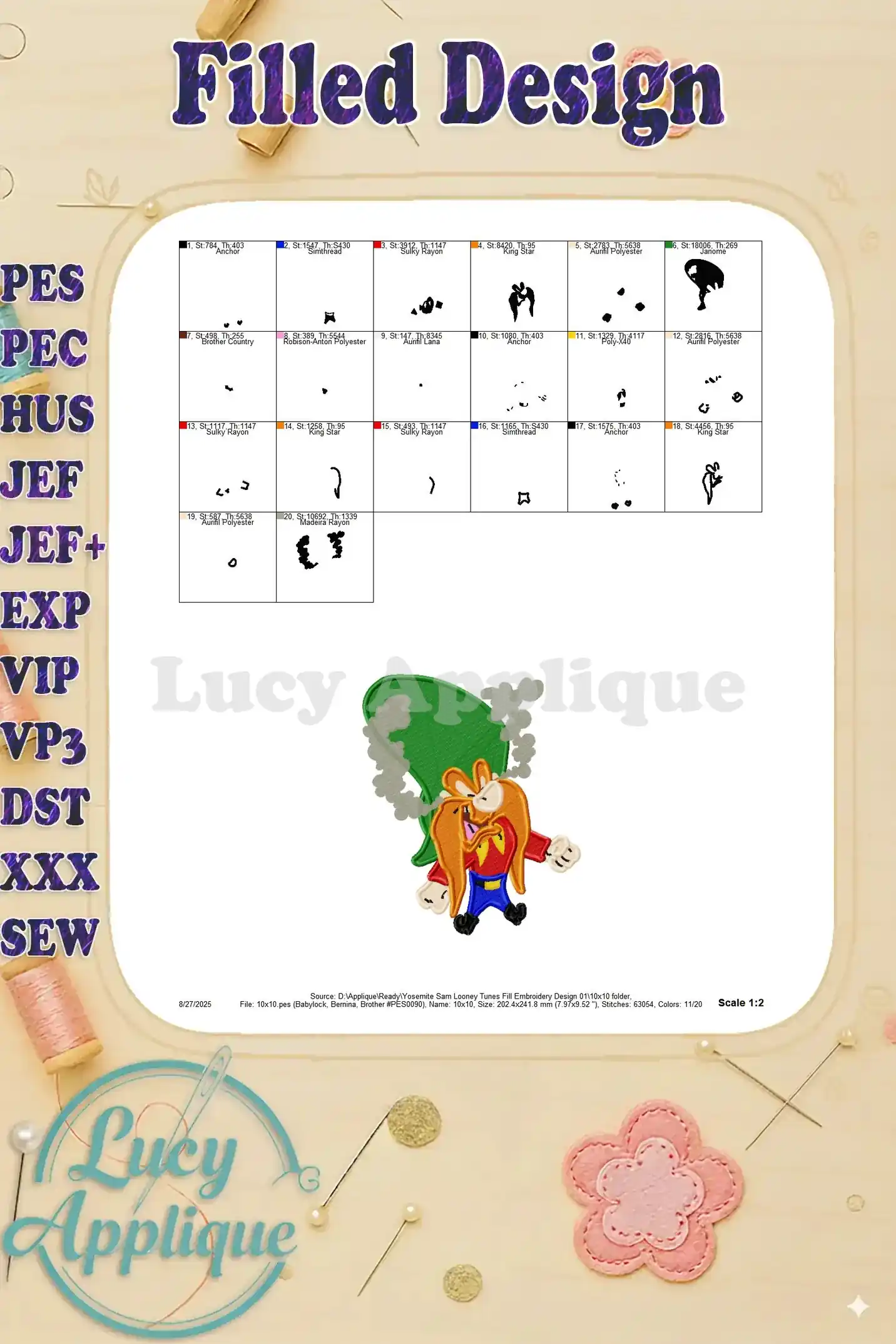 Yosemite Sam Looney Tunes Fill Embroidery Design 01 – Instant Download