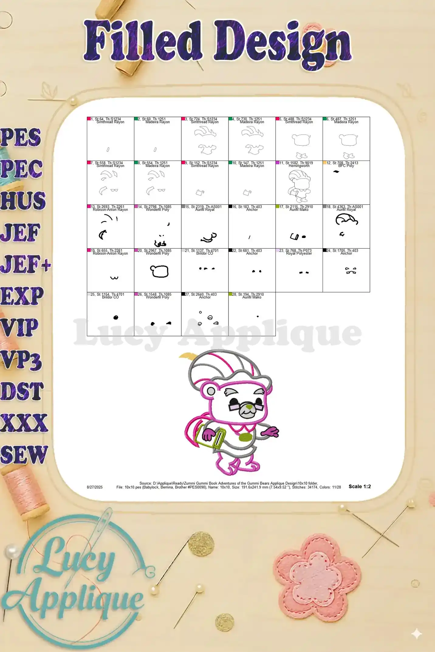 Zummi Gummi Book Adventures of the Gummi Bears Applique Design – Instant Download